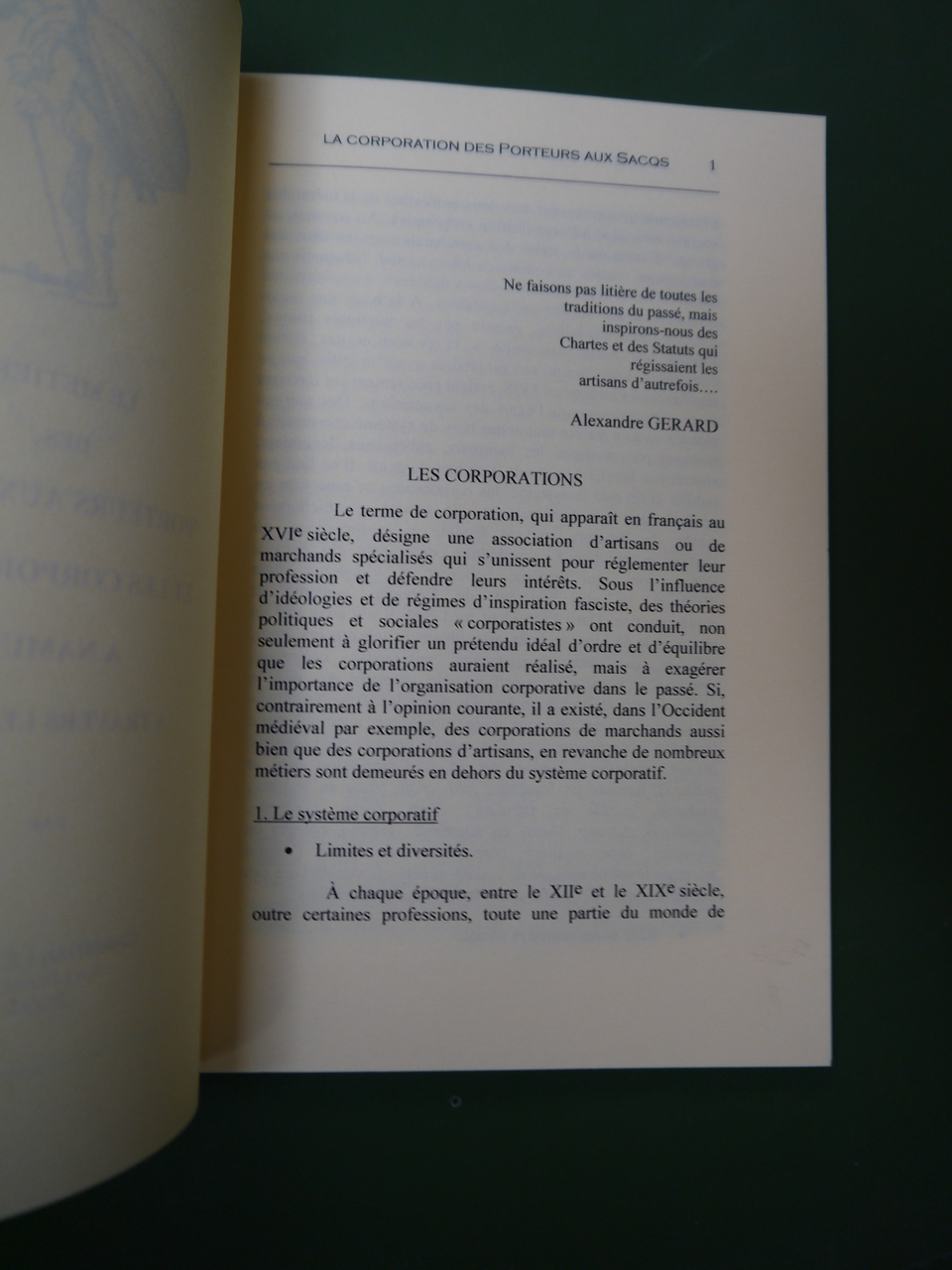 Le métier des « porteurs aux sacqs » et les corporations à Namur à travers les âges, Christian Lemaire, auto-édition, 2004