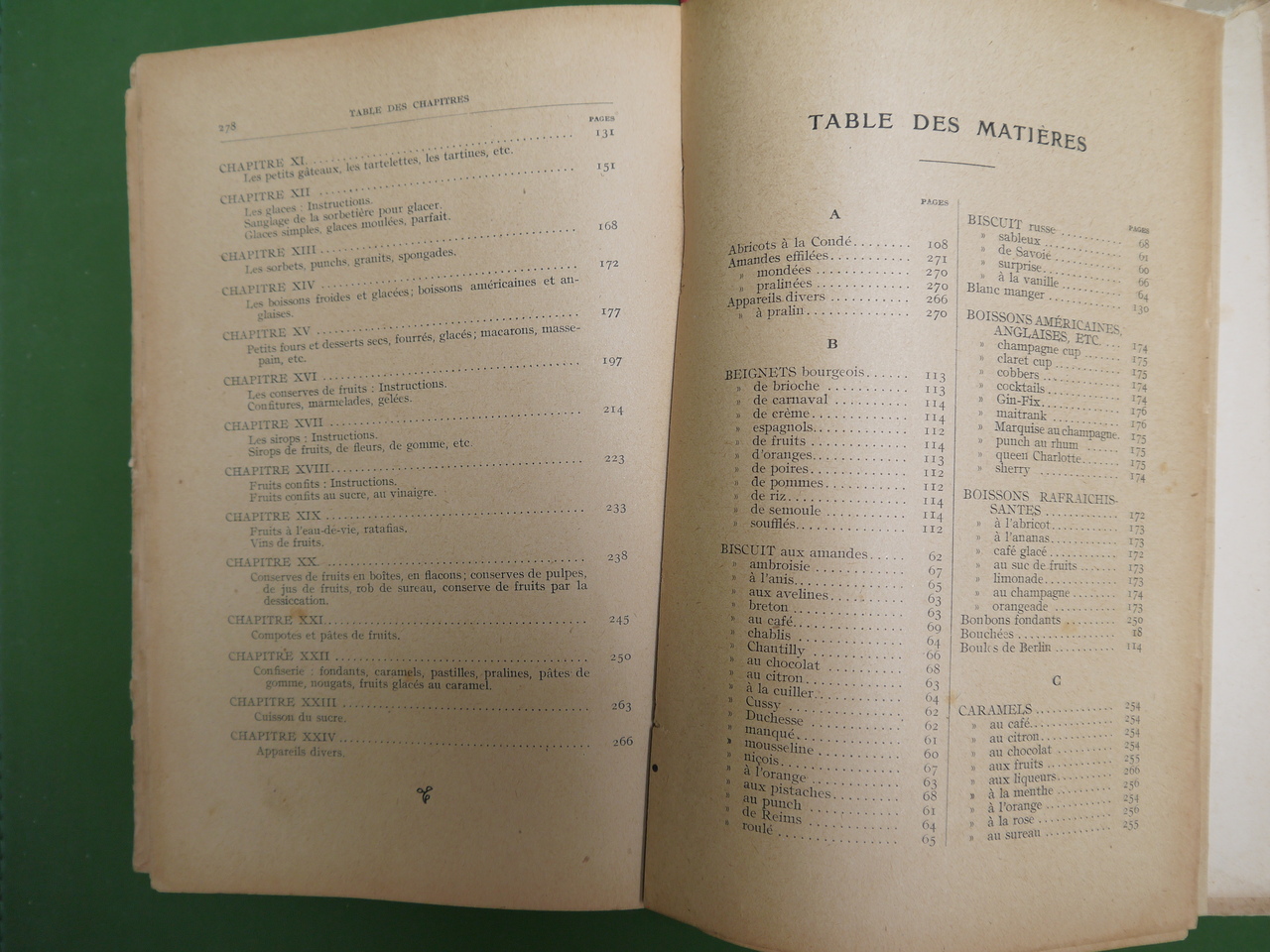 L’auteur se présente notamment comme « chef pâtissier de S.M. l’Impératrice Charlotte »… Nougats, glaces, sirops, et des desserts par centaines! Exemplaire en état moyen.