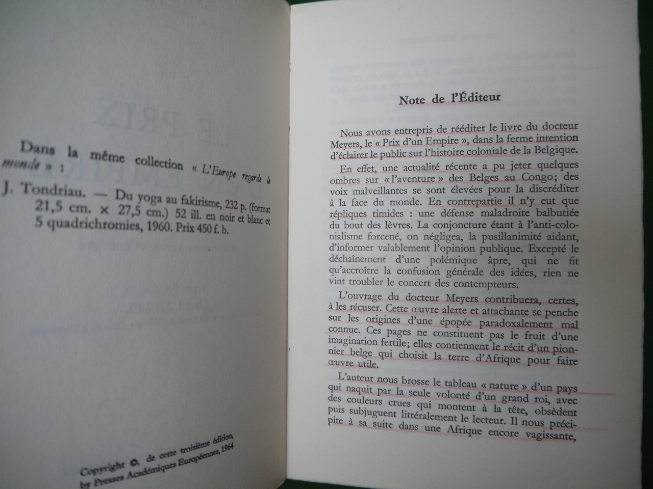 Le témoignage d’un médecin militaire qui passa son premier séjour dans l’Etat indépendant du Congo entre 1896 et 1899. Troisième édition d’un texte paru chez Charles Dessart en 1943.