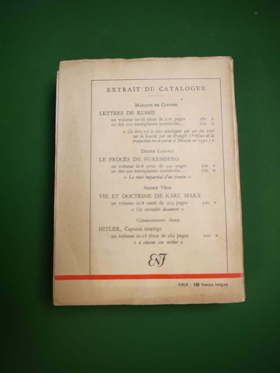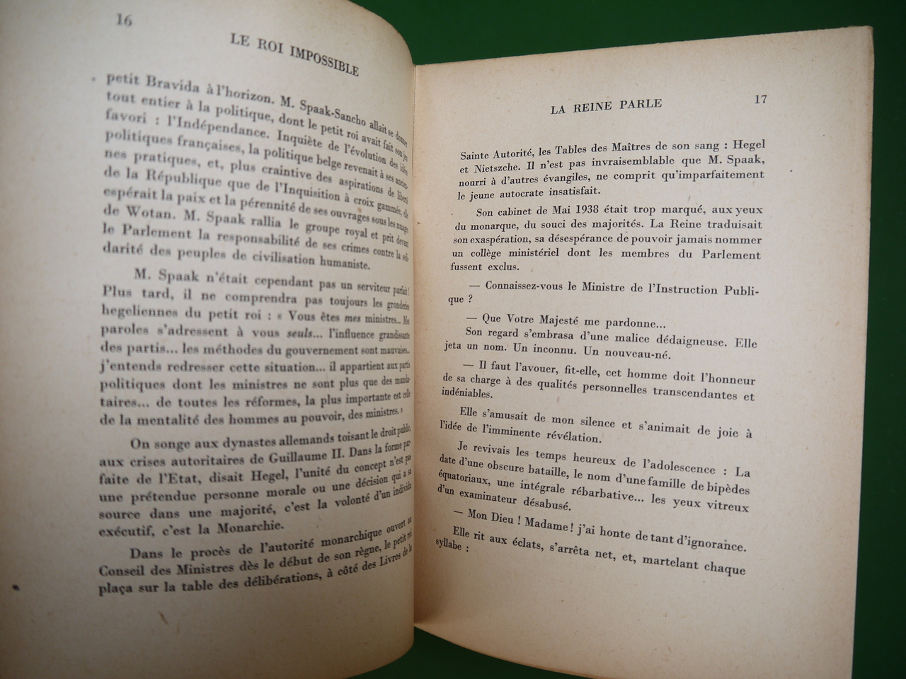 L’auteur, un musicien né à Liège, fut le premier directeur de la Chapelle musicale voulue par la reine Elisabeth. Il ne semble pas pour autant partisan de Léopold III, comme le suggère le titre d’un autre ouvrage « à paraître: Monsieur Pirenne a menti ». Exemplaire non-coupé.