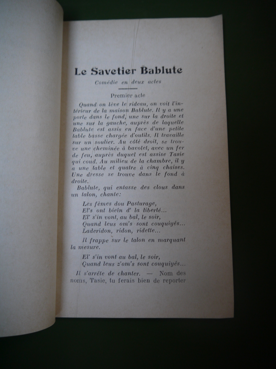 « Comédie en deux actes traduite du patois borain », 67 pages.