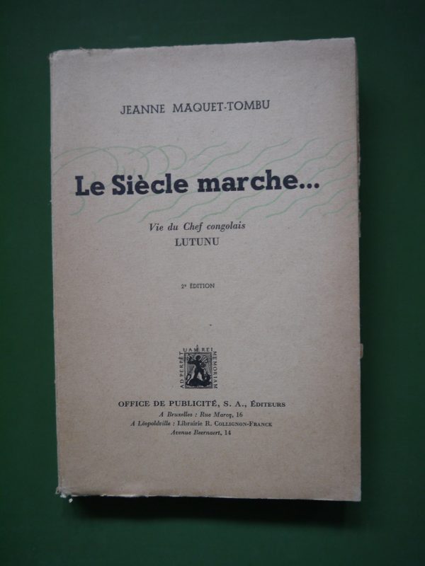 Touvées ici, ces informations sur l’auteure: « Également connue comme pastelliste, Jeanne Maquet-Tombu (1893-1978) est docteur en histoire de l’art et archéologie. Outre l’art, elle s’intéresse à l’écriture et, en 1936, son ouvrage Le siècle marche obtient le Prix triennal de littérature coloniale. C’est en 1930 qu’elle accompagne son mari au Congo, Marcel Maquet19, qui sera nommé gouverneur de la province de Léopoldville en 1943. Elle est membre de l’Union des femmes coloniales et, après son retour en Belgique, elle sera un temps présidente de la section lettres du Lyceum Club de Belgique (Gemis, 2008 : 157). Son intérêt pour l’art africain l’amène à créer, en 1935 à Léopoldville, l’association des « Amis de l’art indigène », puis l’année suivante le « Musée de la vie indigène ». «