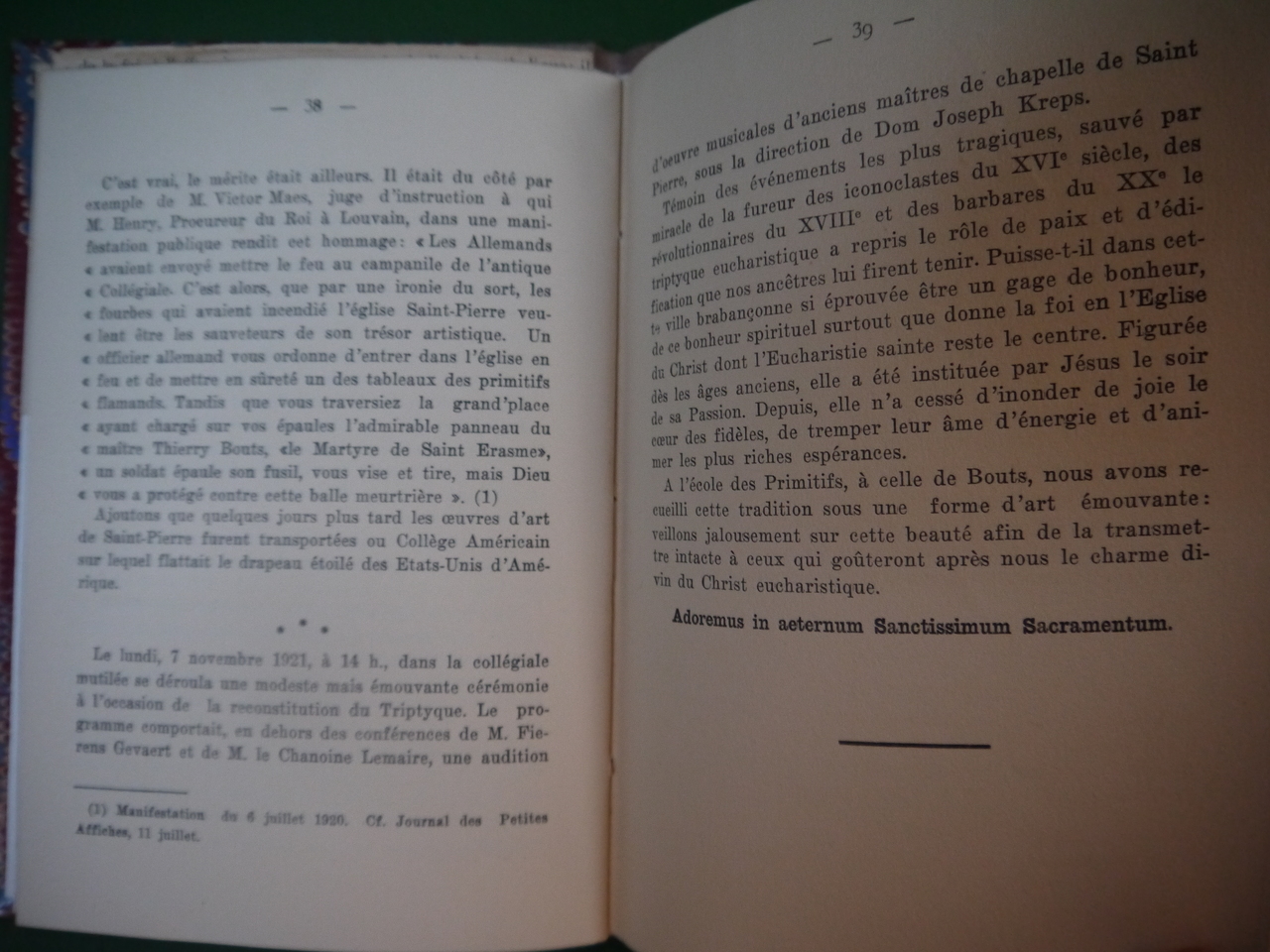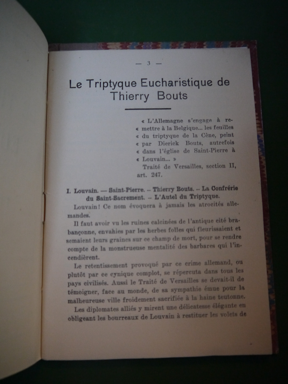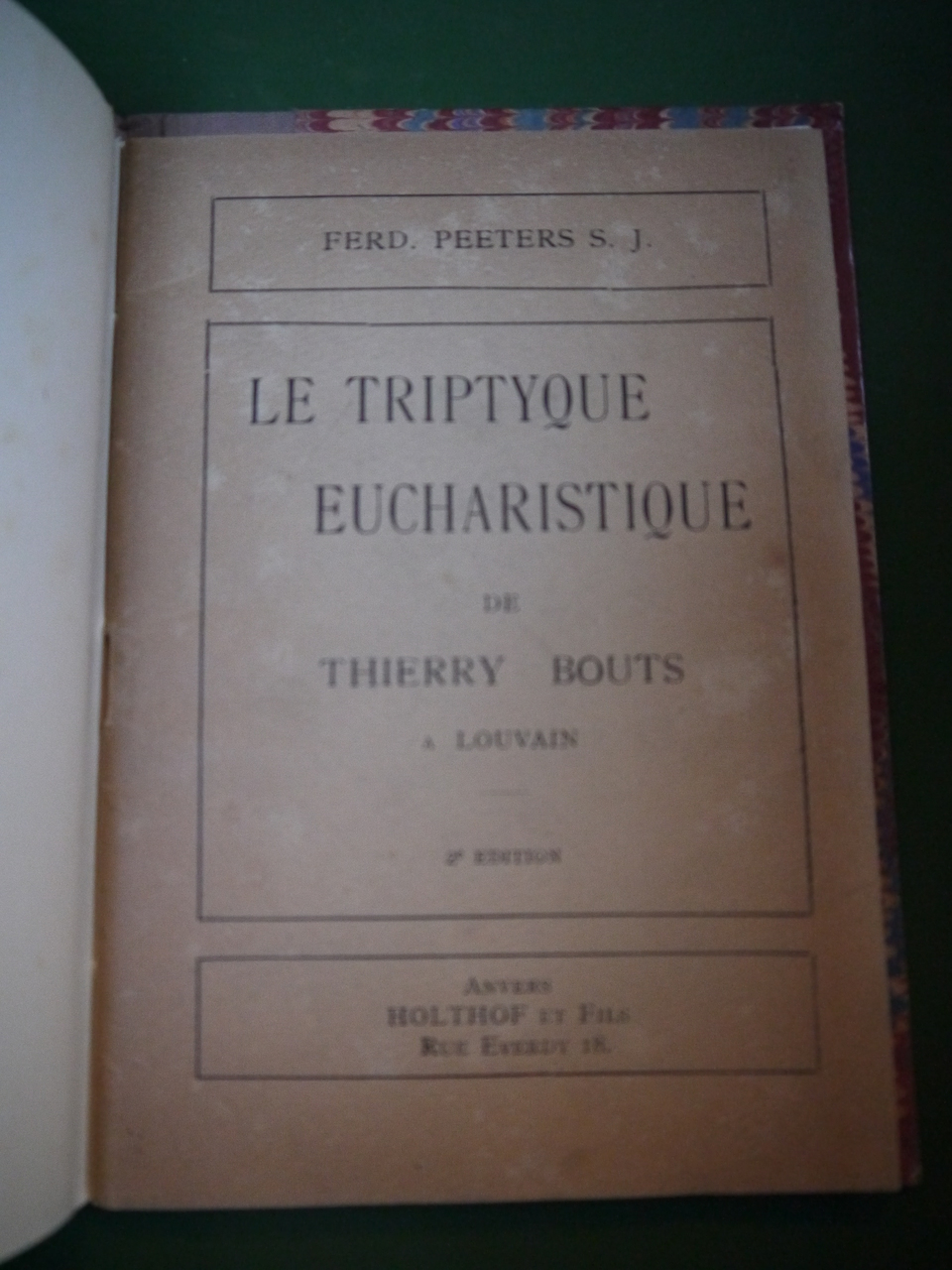39 pages sur le triptyque qui échappa par miracle à la destruction et aux incendies ayant touché Leuven en 1914. Holthof étatit établi rue Everdy à Antwerpen.