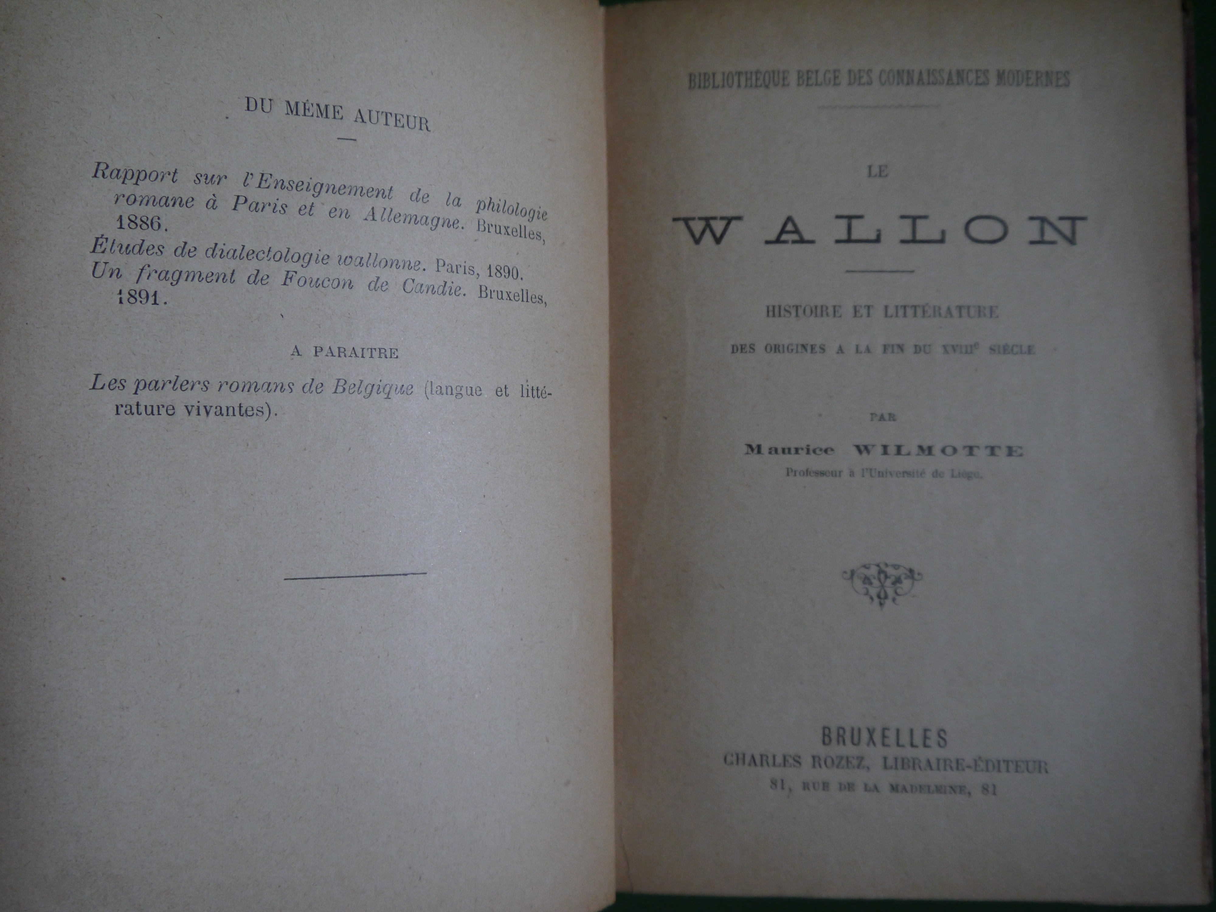 « Histoire et littérature des origines à la fin du XVIIIe siècle ». Dans la « Bibliothèque belge des connaissances modernes ». L’avant-propos est daté de 1893.