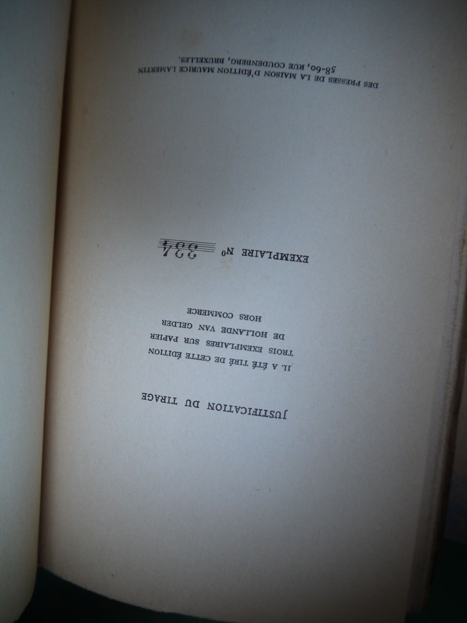 « Texte intégral de l’édition Lacomblez ». L’exemplaire n° 334 – sur un total non précisé.