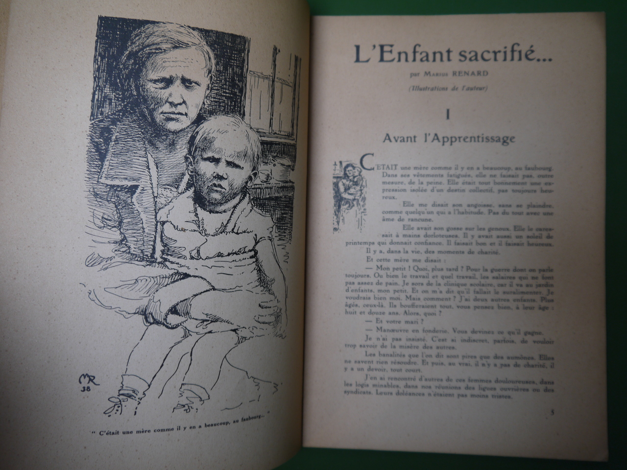 « Illustrations de l’auteur. » L’auteur, originaire du Borinage, se souciait ici plus particulièrement des conditions de vie et de travail des enfants d’Anderlecht et de Bruxelles.