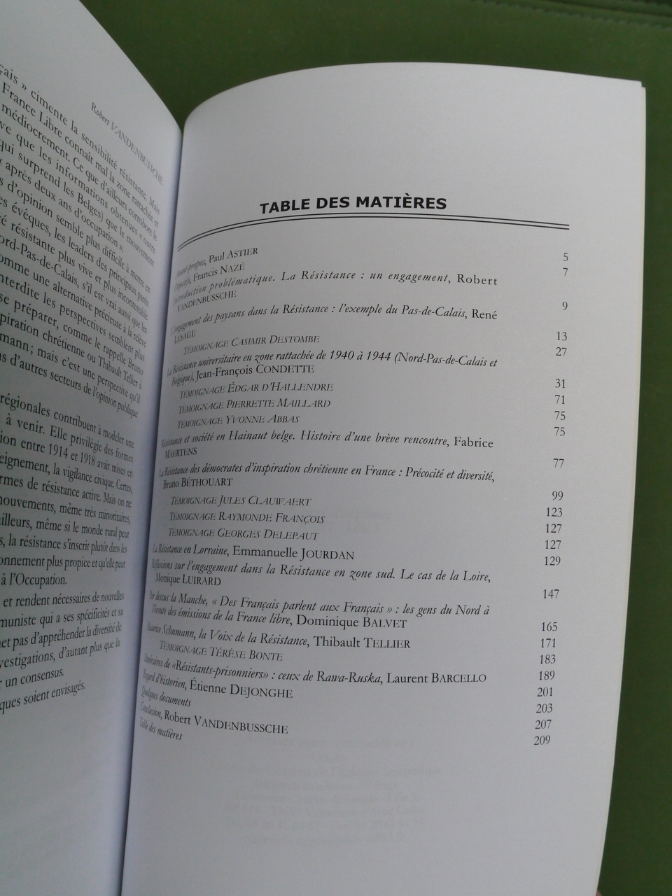 Deux contributions ont trait à la Belgique, dont une intitulée « Résistance et société en Hainaut belge ».