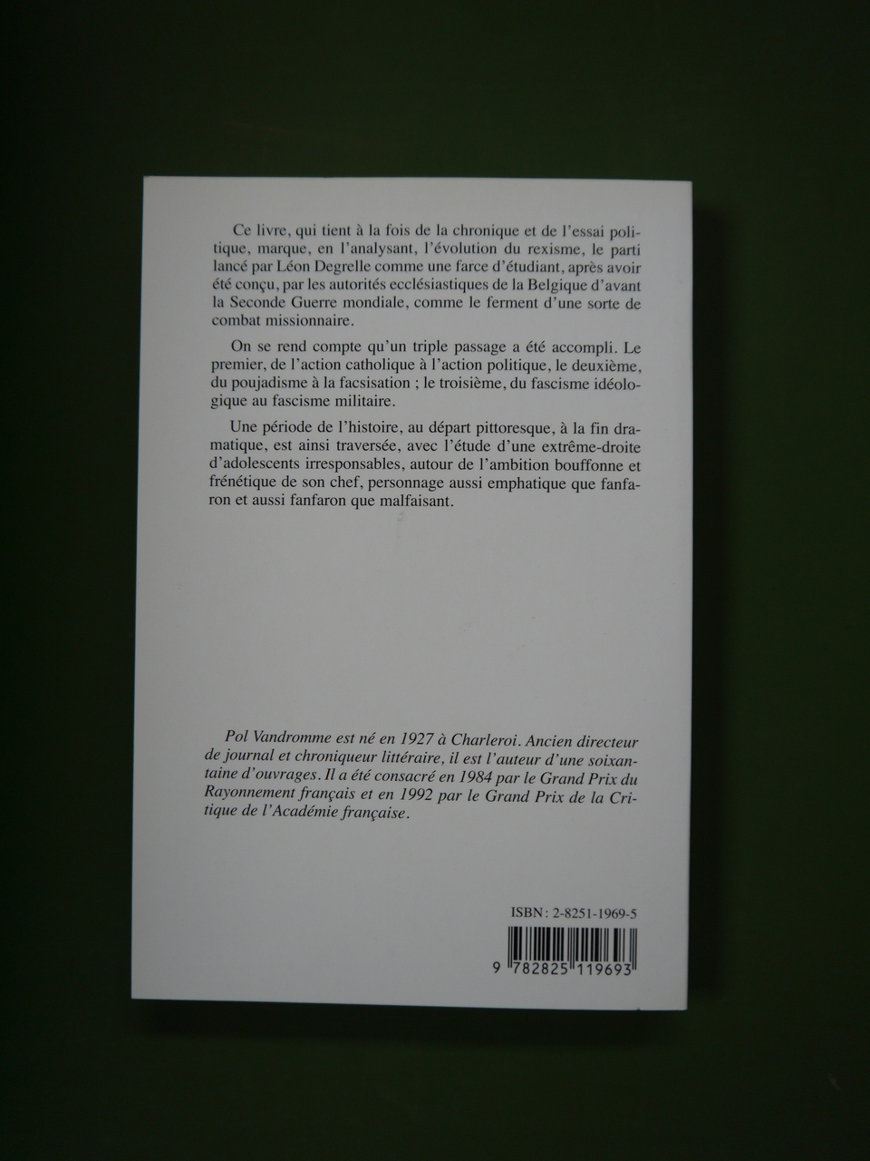 Une étude récente du rexisme par un spécialiste des personnages « de droite ». L’exemplaire proposé est plastifié.