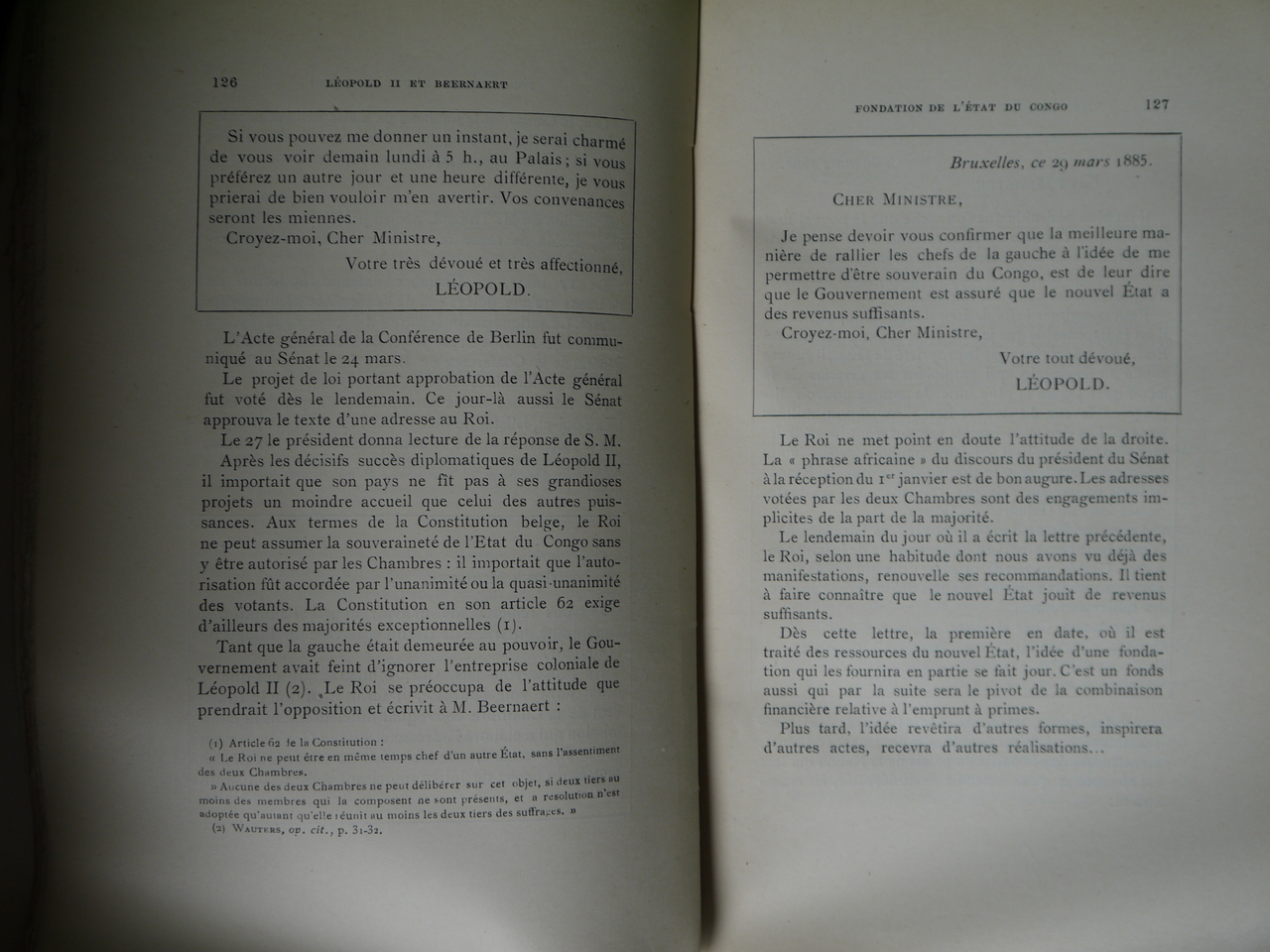 « D’après leur correspondance inédite de1884 à 1894 ». Beernaert était le Premier ministre belge ces années-là.