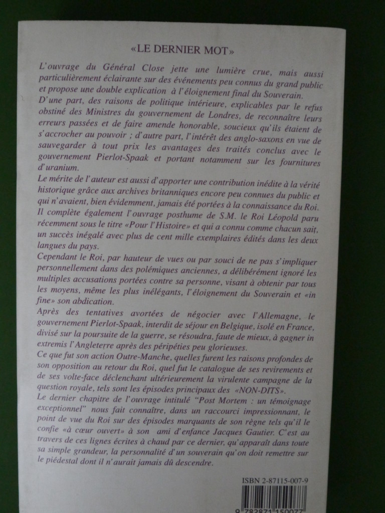 Léopold III les non-dits, Général Robert Close, éditions Ligne claire, 2001