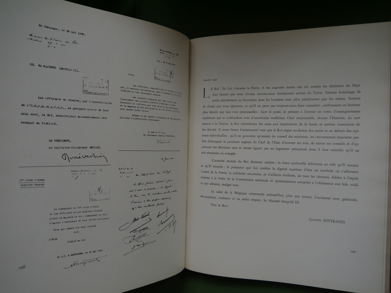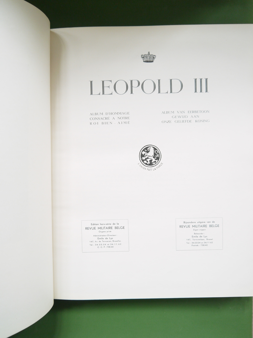 Epais volume à la gloire du roi Léopold III en pleine phase finale de la « Question royale ». Avec par exemple la reproduction de messages de soutien de nombreux bourgmestres.