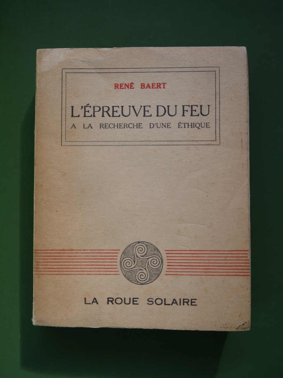 René Baert, un proche de Rex, fut pendant la guerre critique d’art pour le « Pays réel ». Il fut tué en Allemagne par des soldats belges en 1945. L’exemplaire proposé propose comme titre, « A la recherche d’une éthique », amputé de » L’épreuve du feu ».