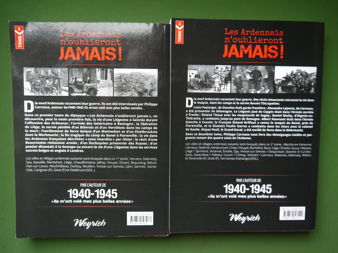 Dans chaque volume, 19 récits de guerre d’un peu partout en Ardenne, en France et même au GD de Luxembourg…