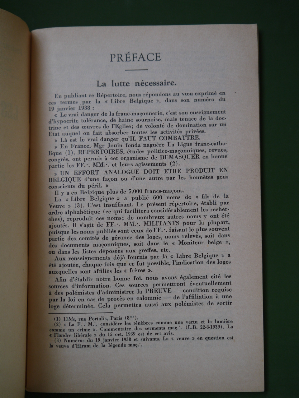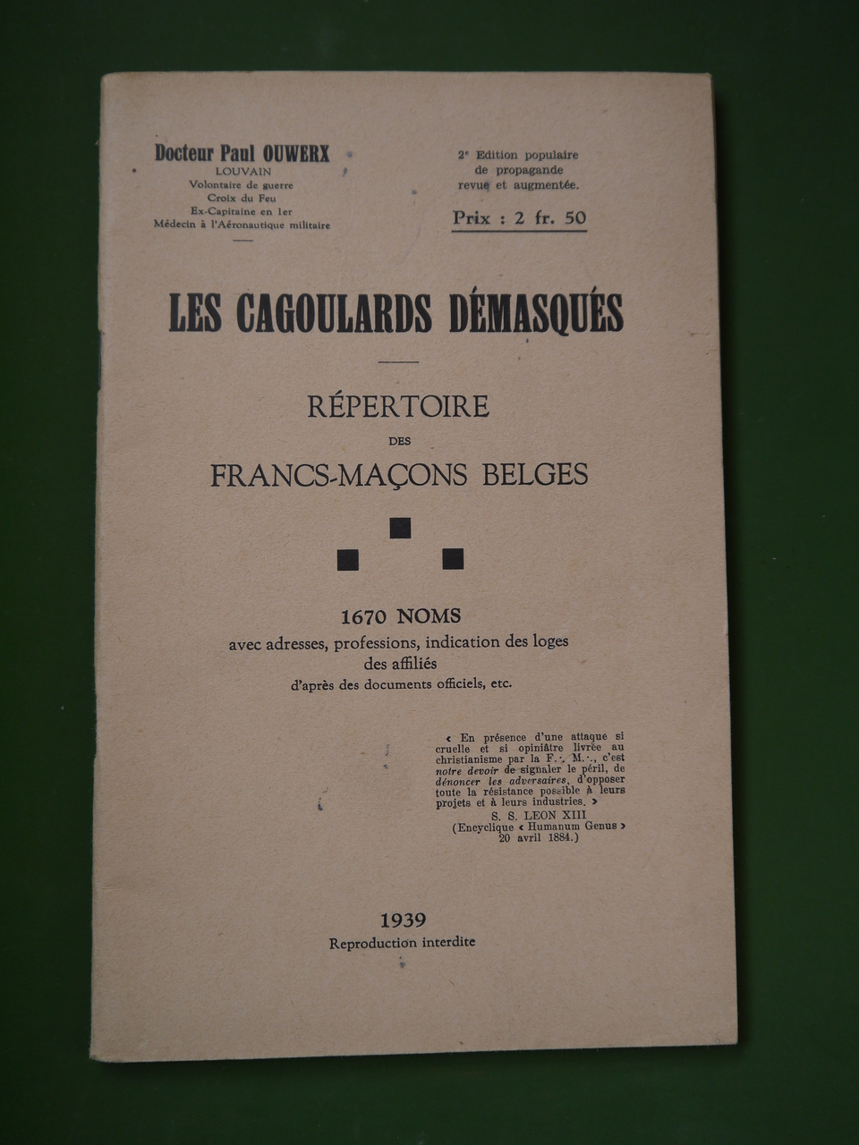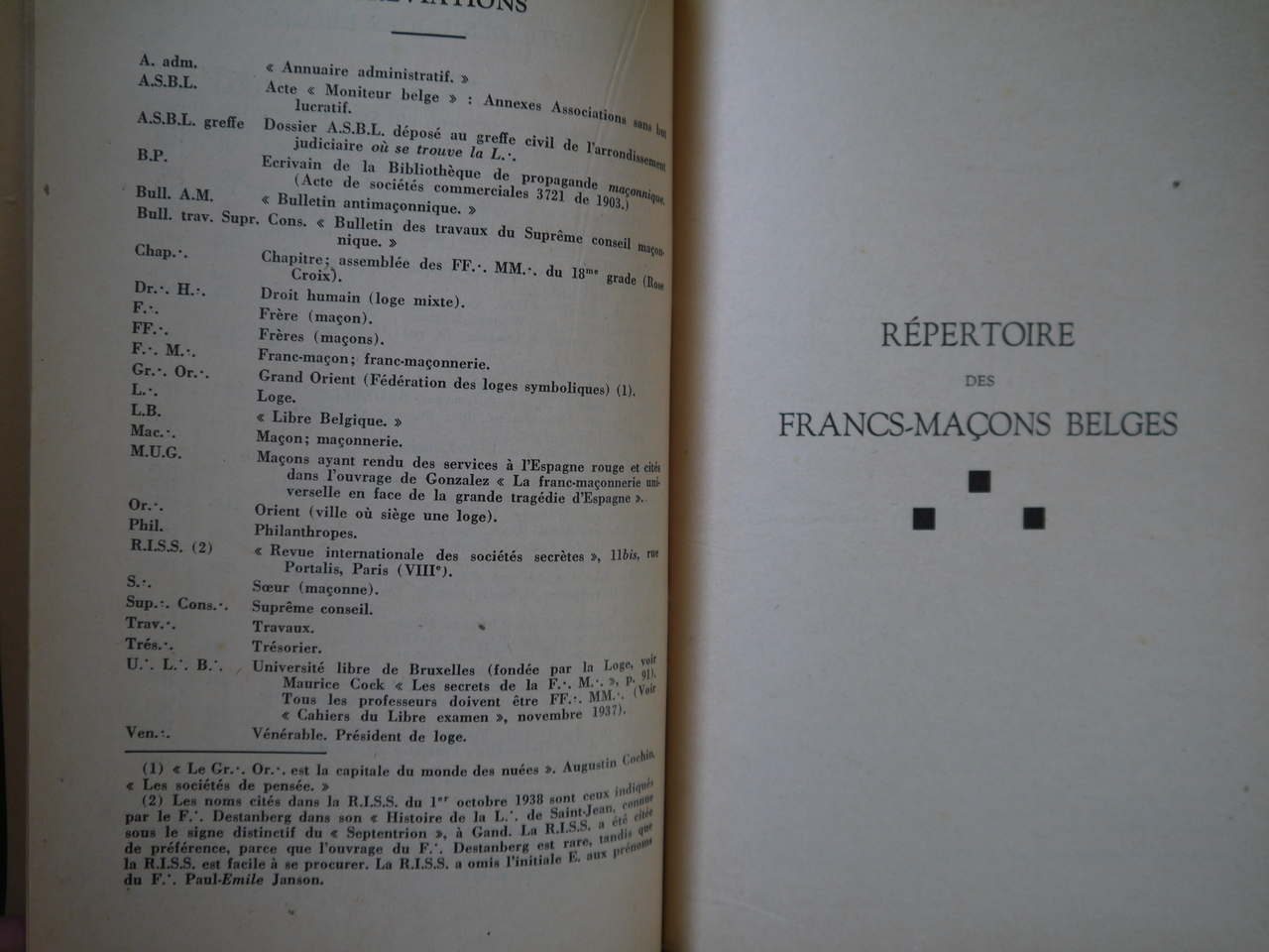 Un aperçu de l’ambiance de franche camaraderie qui régnait en Belgique avant-guerre… « Répertoire des francs-maçons belges – 1670 noms avec adresses, professions indication des loges des affiliés »…
