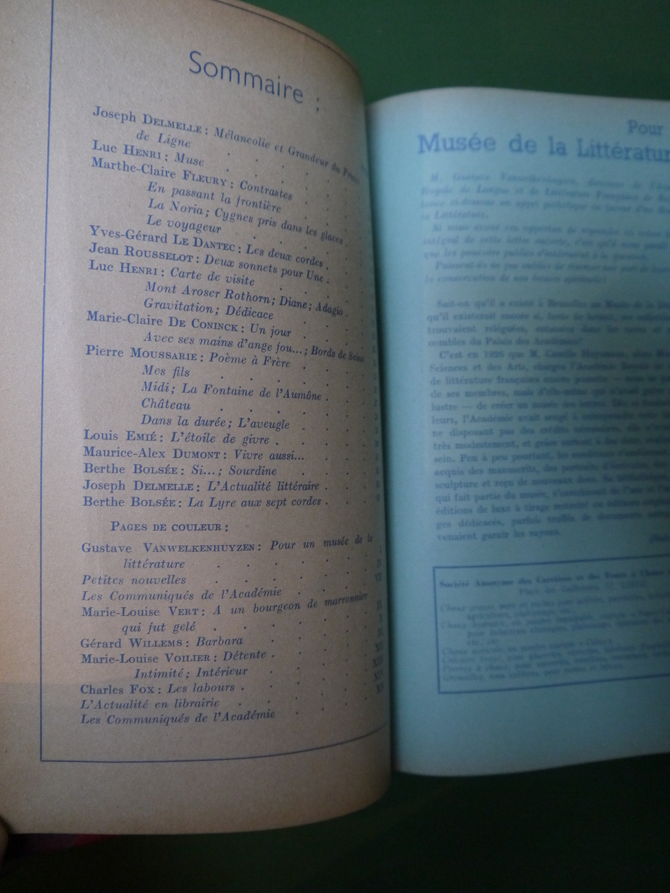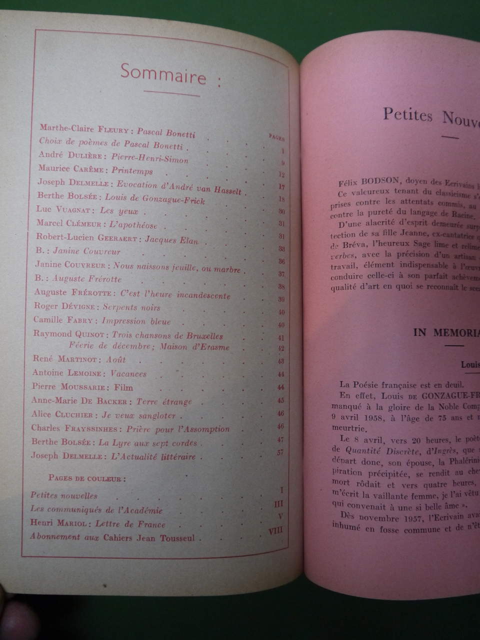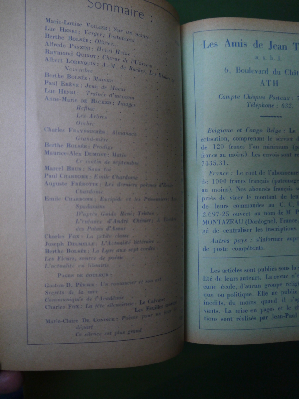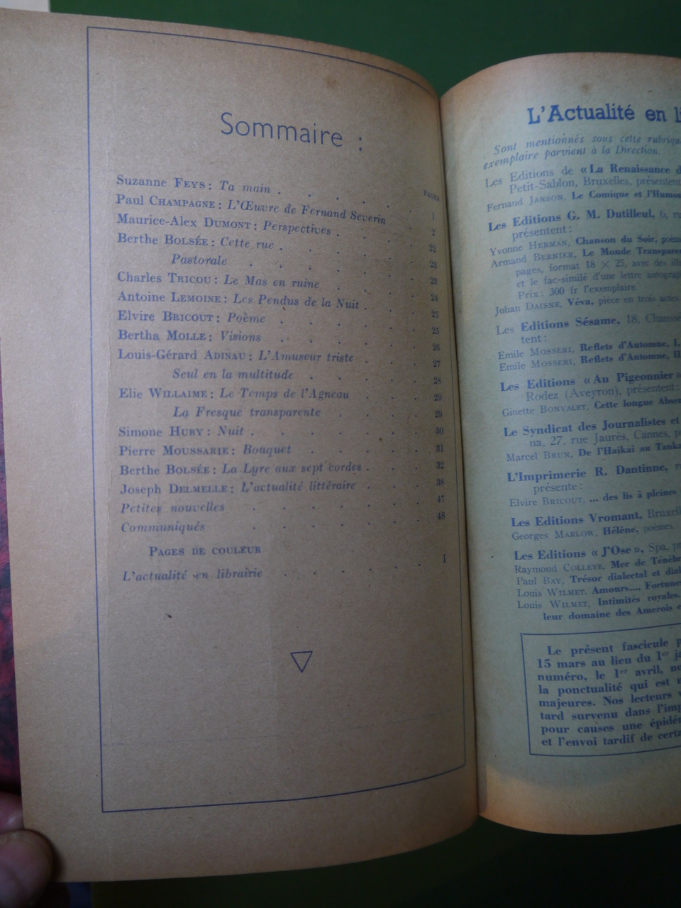 8 numéros des Cahiers. Au fil des sommaires, on croise les noms de Joseph Delmelle, Maurice Carême, Luc Henri, Paul Erève, Berthe Bolsée…