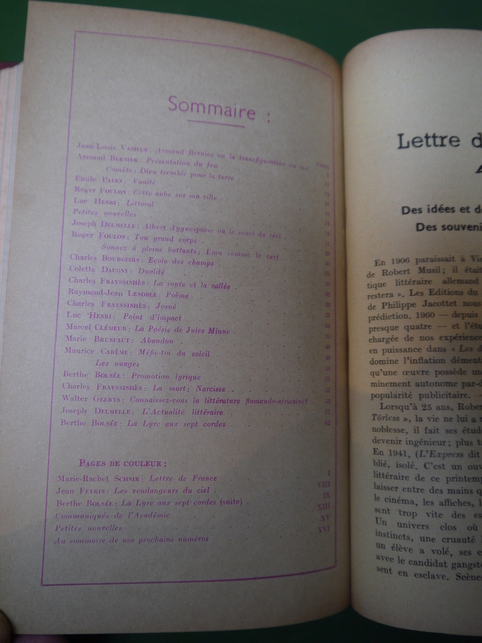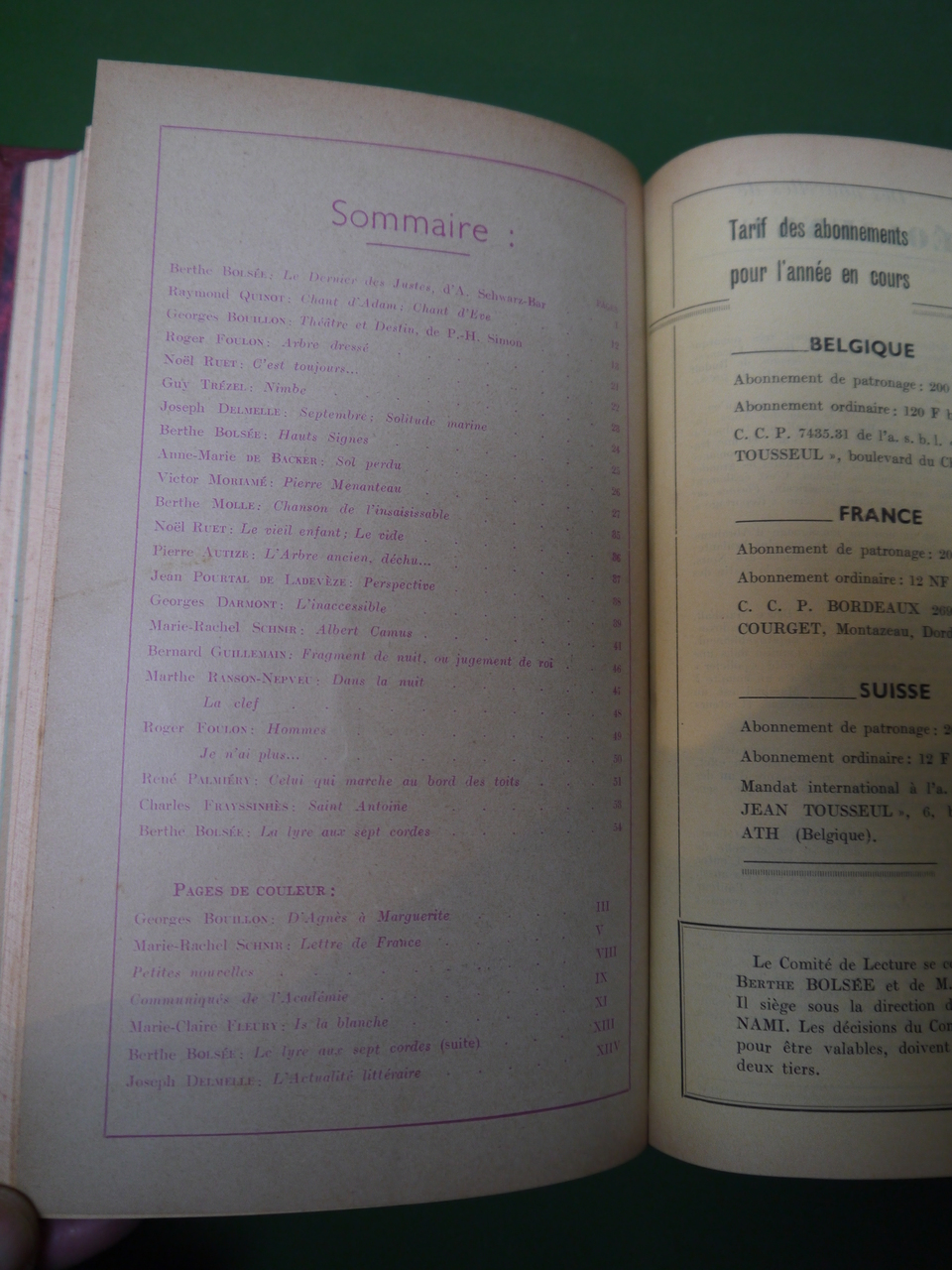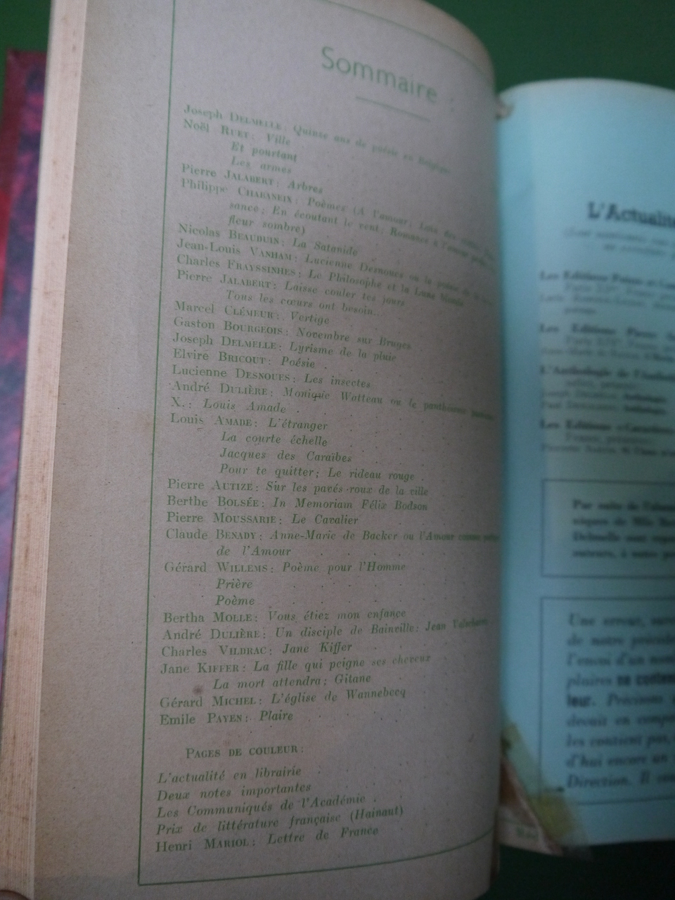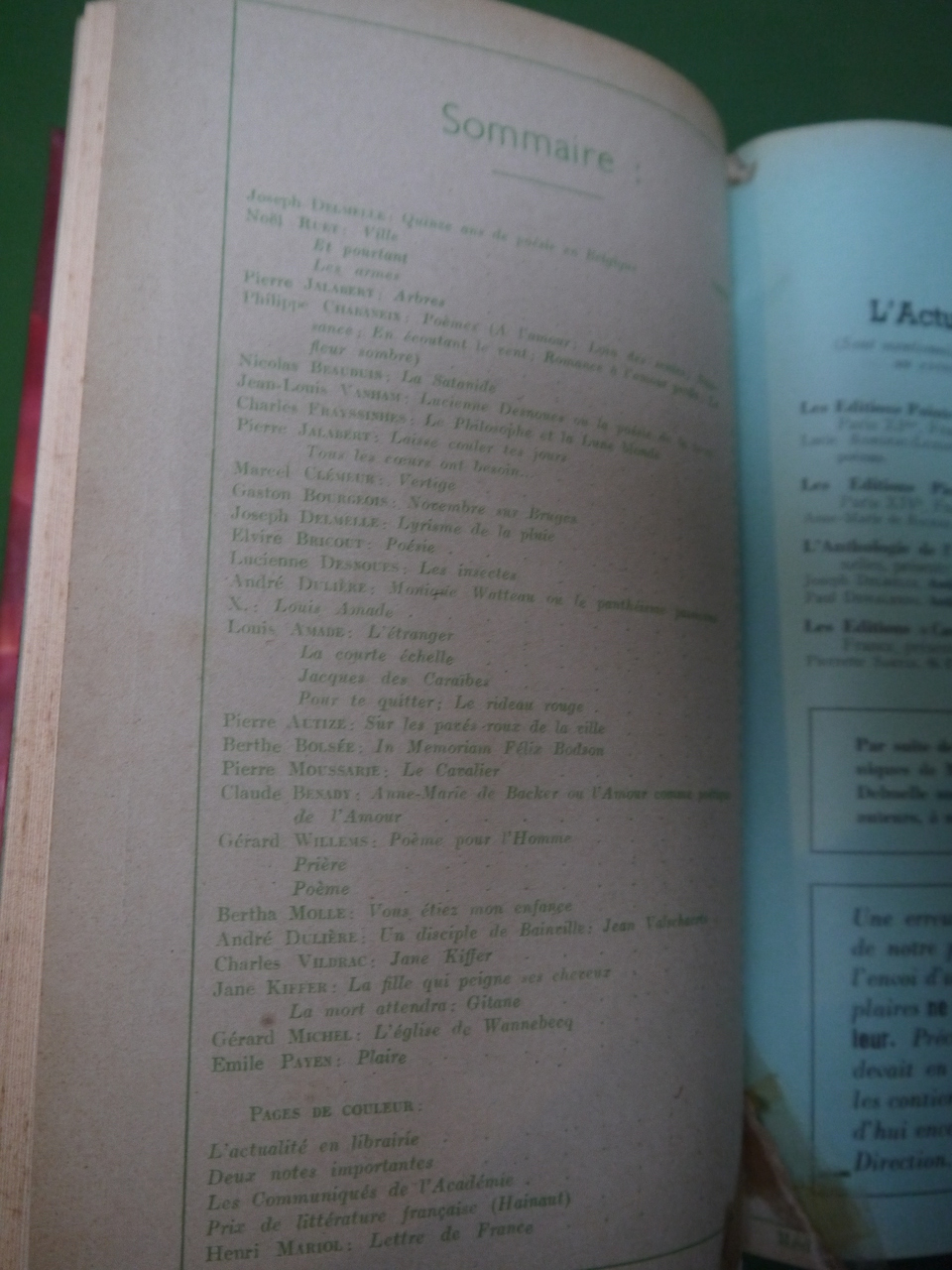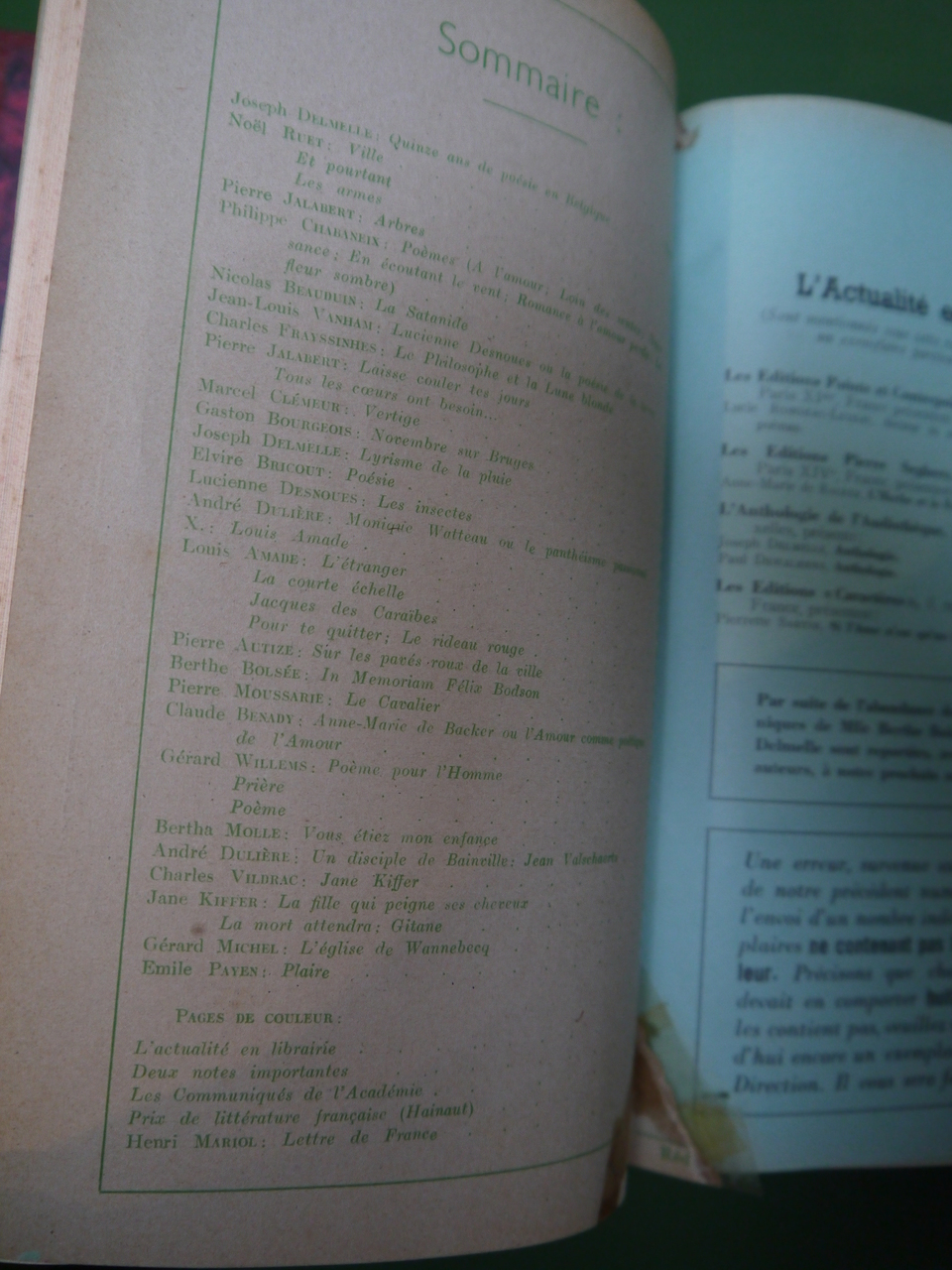 8 numéros des Cahiers. Au fil des sommaires, on croise les noms de Joseph Delmelle, Maurice Carême, Charles Fox, Roger Brucher, Roger Foulon, Berthe Bolsée…