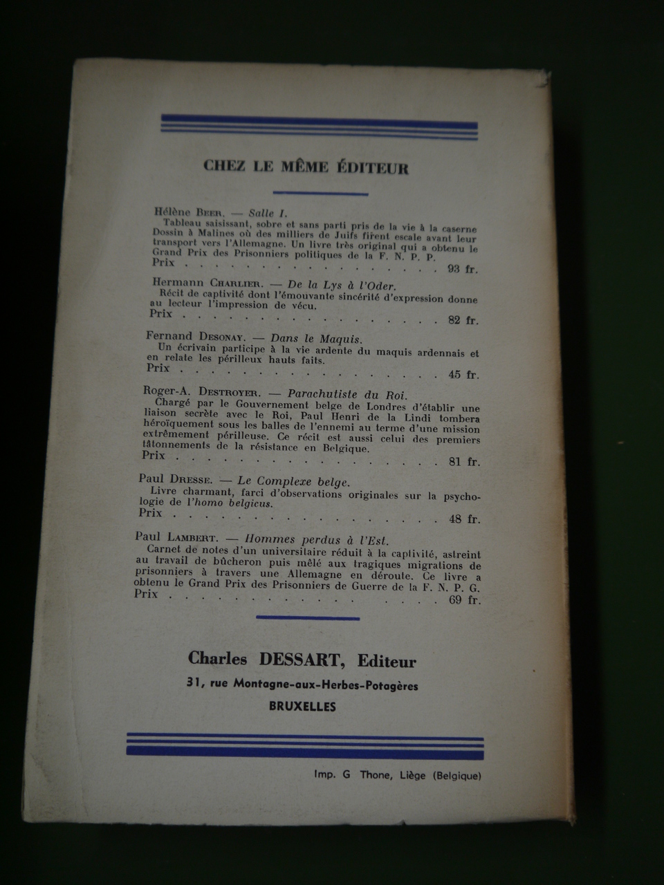 « Chronique de captivité ». L’auteur, né à Theux, fut un élève de Marie Delcourt avec qui il publia « Douze lettres d’Erasme ».