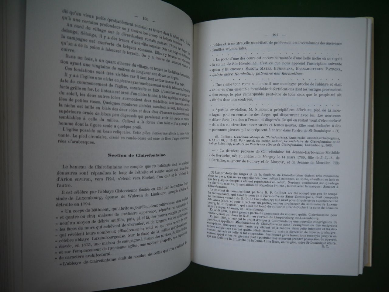 Reproduction de cette publication de 1889, due à l’Institut archéologique du Luxembourg (tome XXII des annales). Plus de 500 pages!