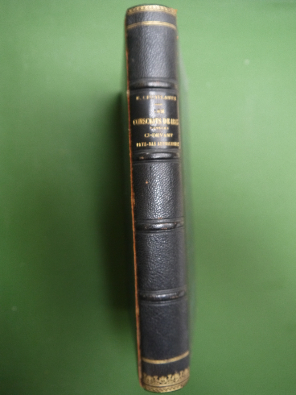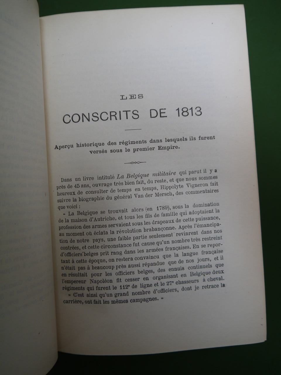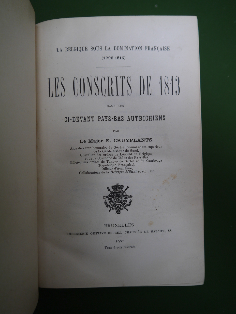 L’auteur estime à 112.000 le nombres de conscrits belges enrôlés dans les armées de la République ou de l’Empire. Détails sur le contenu ici. La couverture arrière est complètement désolidarisée de l’ensemble – exemplaire à restaurer.