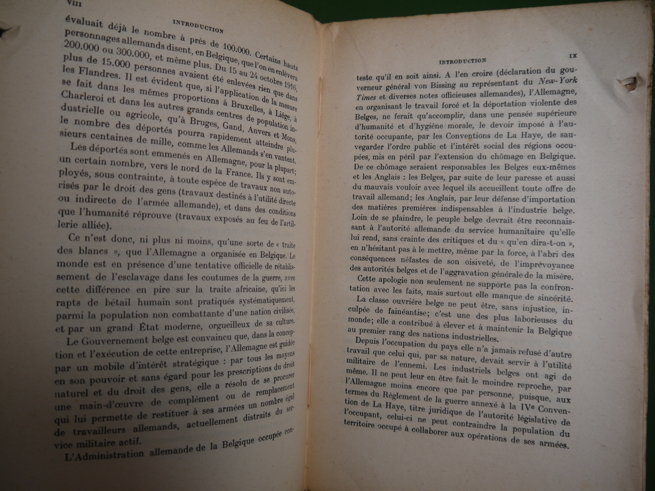 A noter une déchirure dans la marge supérieure des 150 premières pages de l’exemplaire proposé. Les déportations vers l’Allemagne ou le nord de la France se comptaient en dizaines de milliers (entre 200 et 300.000?) et l’auteur qualifie cette pratique d’esclavagisme…