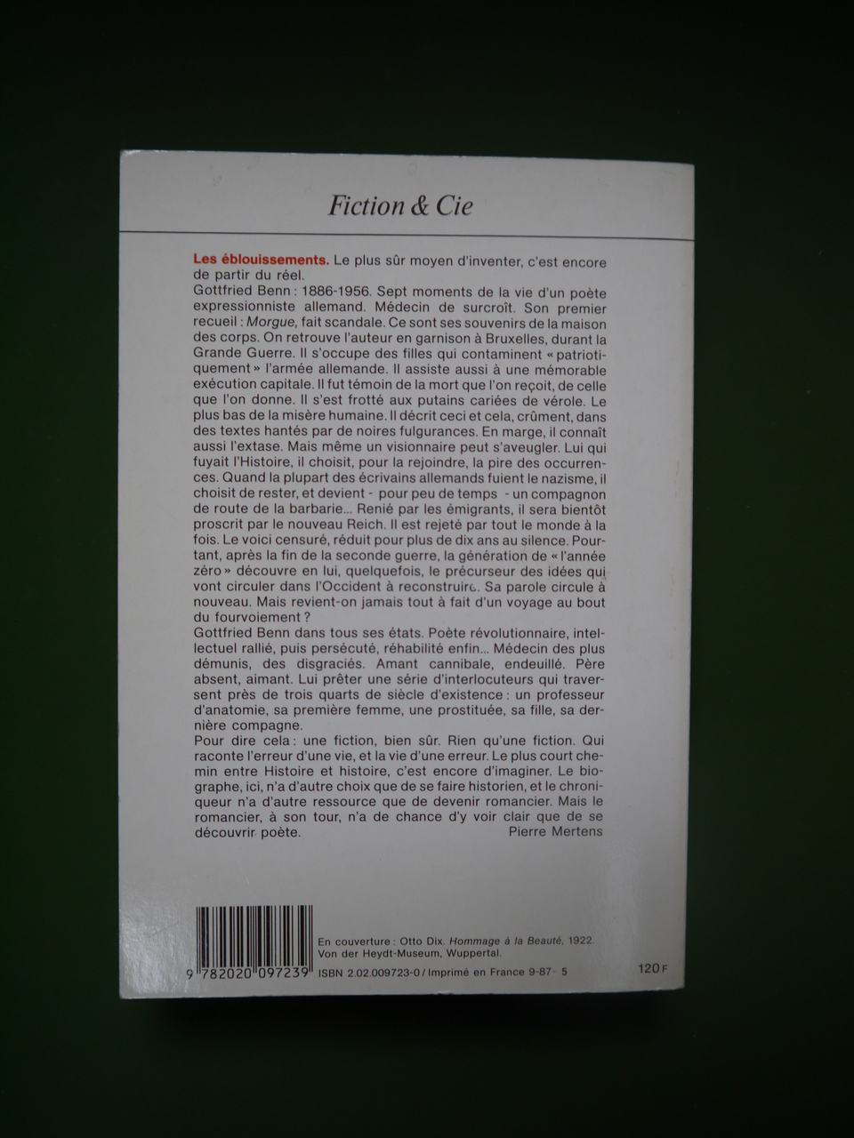 Biographie romancée de l’auteur allemand Gottfried Benn.
