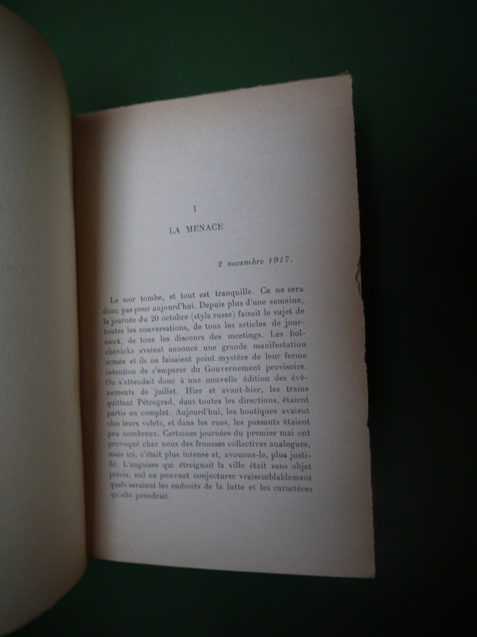« Notes sur la révolution bolchevique à Petrograd pendant l’hiver 1917-1918 ». Un morceau du 4e plat de l’exemplaire proposé est déchiré et manquant.