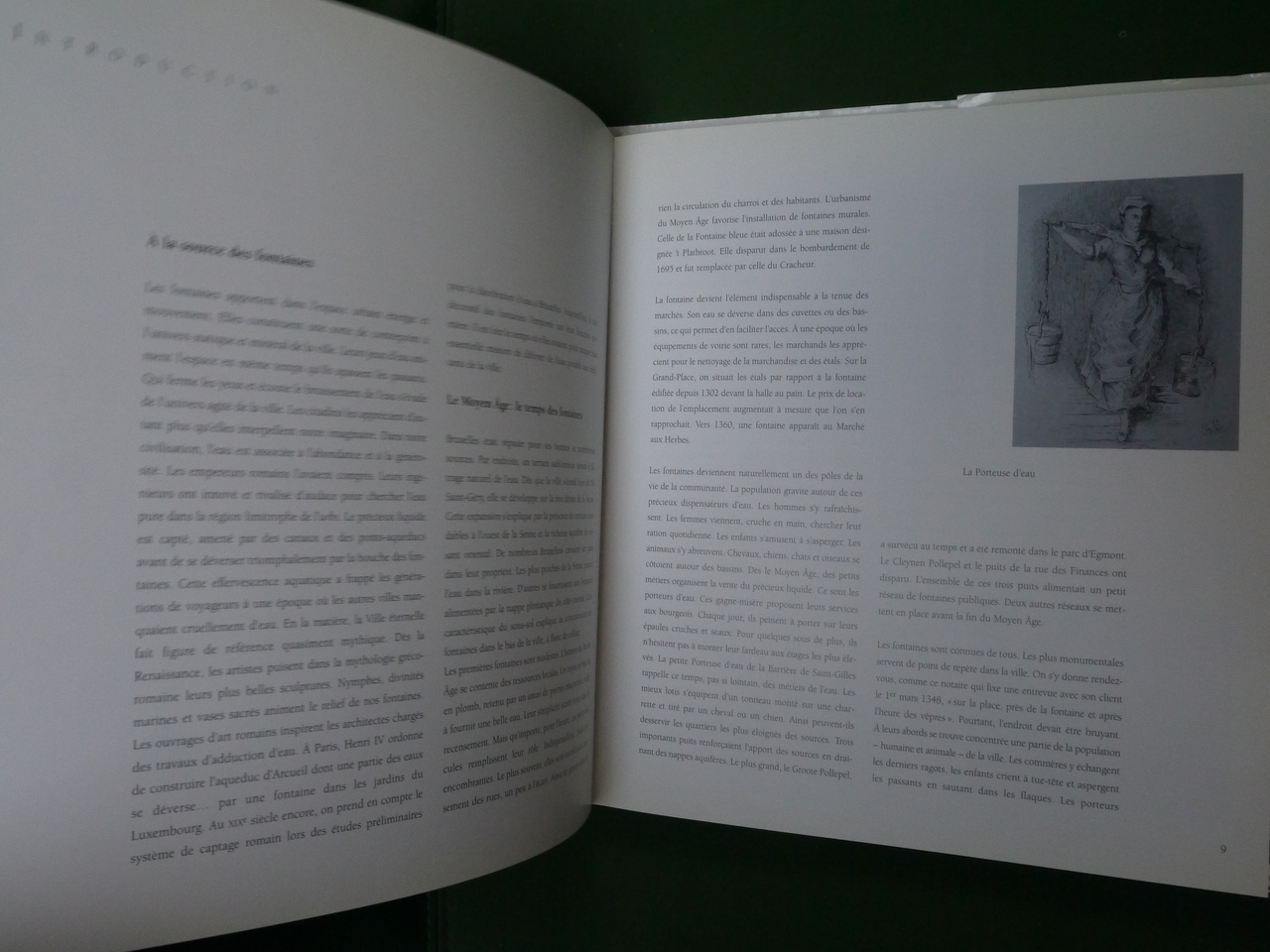 Où l’on se rend compte du nombre et de la variété impressionnants des fontaines bruxelloises. La jaquette de l’exemplaire proposé est fatiguée mais le livre en bel état.