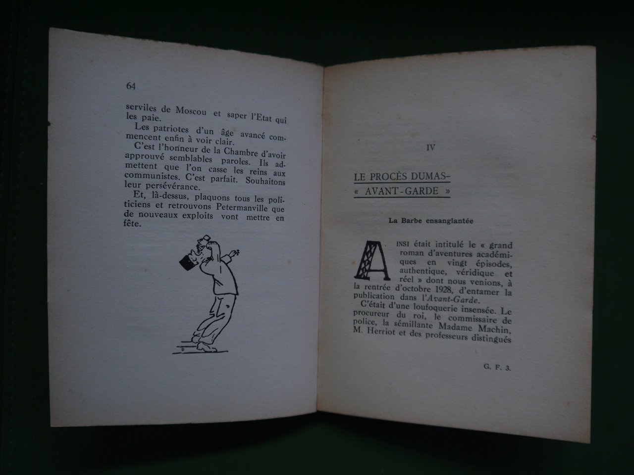 Degrelle raconte notamment comment un groupe d’étudiants fit une expédition à Bruxelles afin de démolir une exposition à la gloire du régime soviétique. Mention de la date « 1930 » en fin d’ouvrage, avant quelques pages de réclames publicitaires…