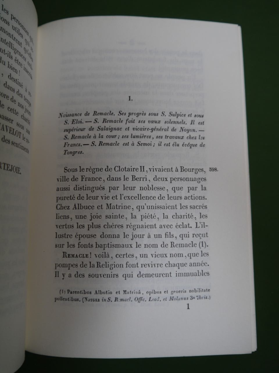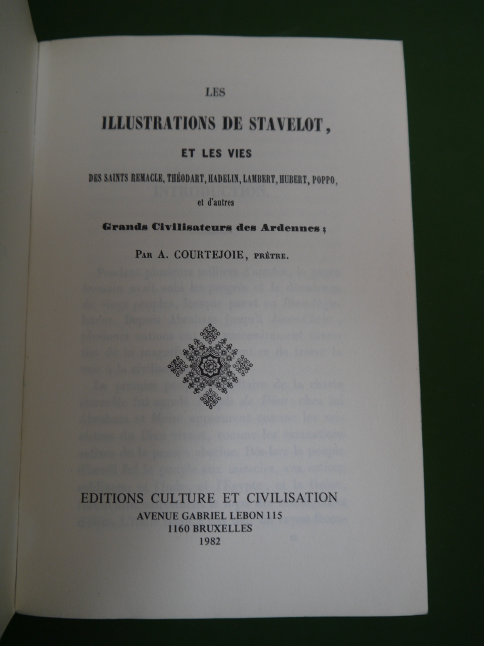 « (…) et les vies des saints Remacle, Theodart, Hadelin, Lambert, Hubert, Poppo et d’autres grands civilisateurs des Ardennes ». Reproduction d’un ouvrage de 1848.