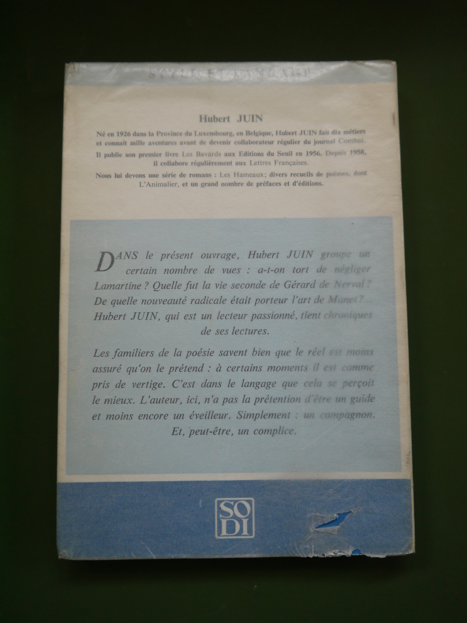 L’auteur commente Lamartine, Gérard de Nerval, Jules Laforgue…