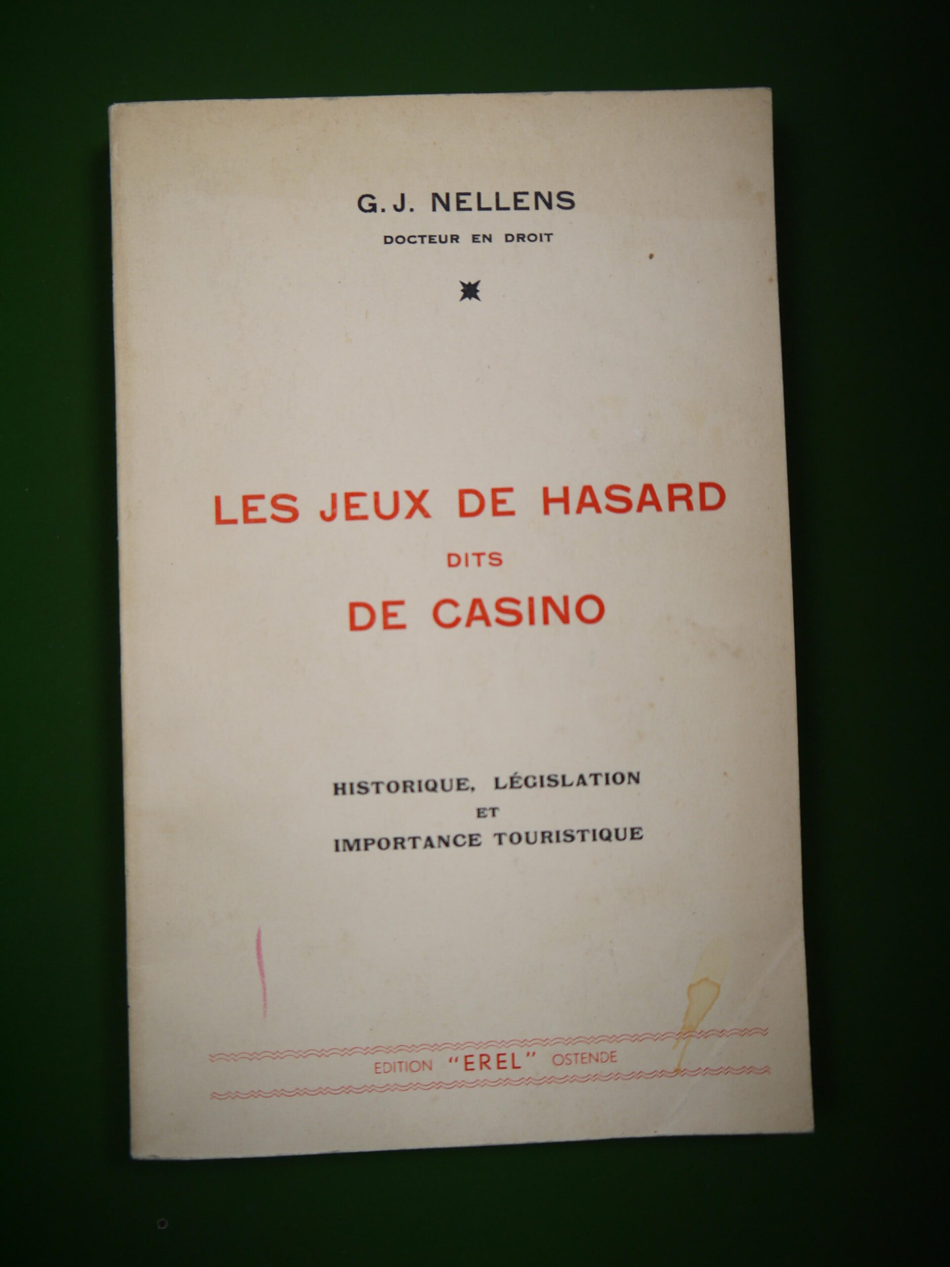 Les jeux de hasard dits de casino, G.J. Nellens, Erel, non-daté