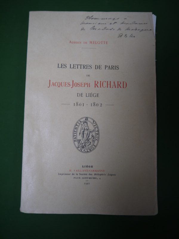 Les lettres de voyage savoureuses d’un notable liégeois à son épouse restée à Liège. Avec un envoi de l’auteur.