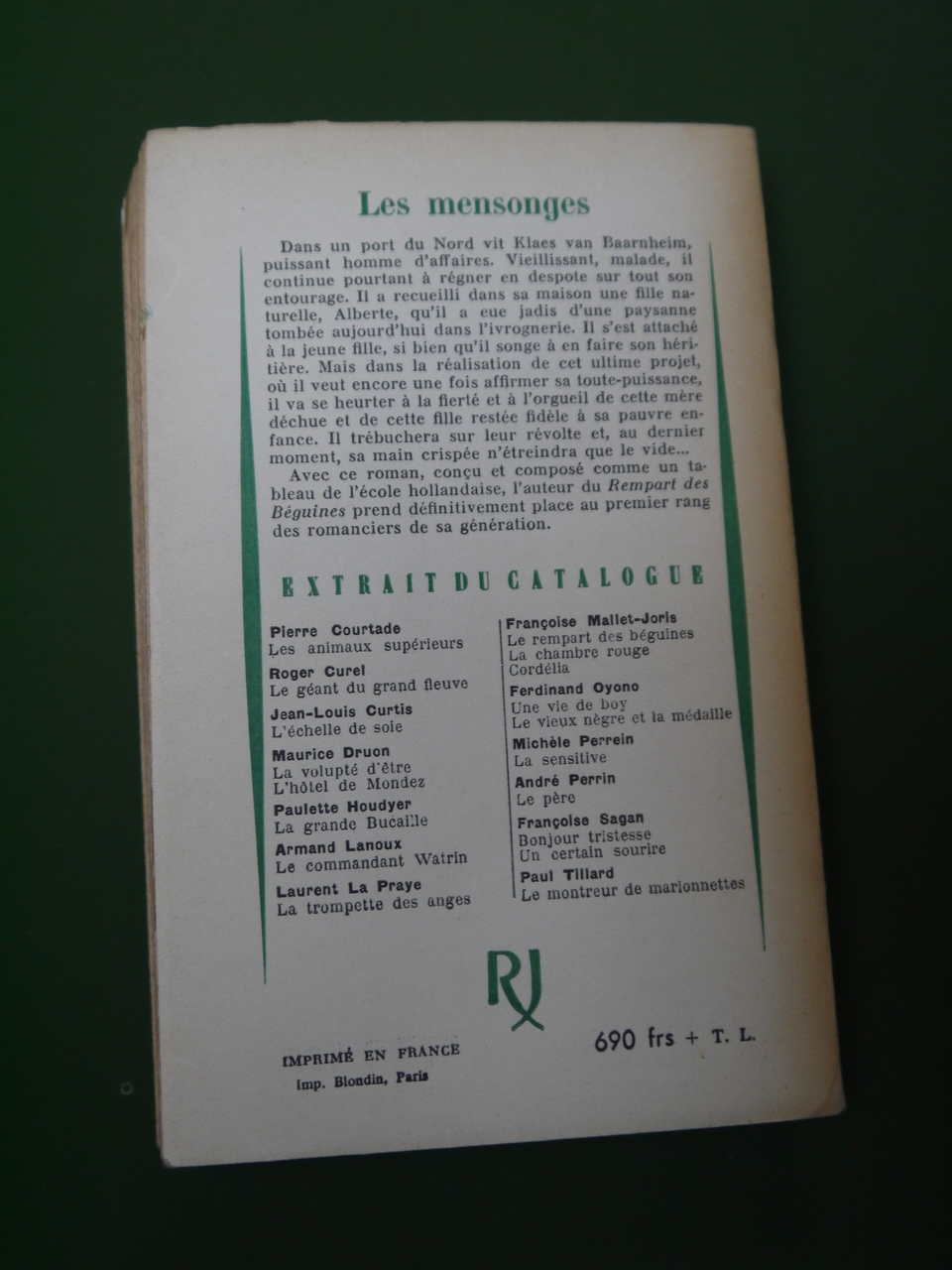 Soyez le premier à laisser votre avis sur “Les mensonges, Françoise Mallet-Joris, Julliard, 1956”