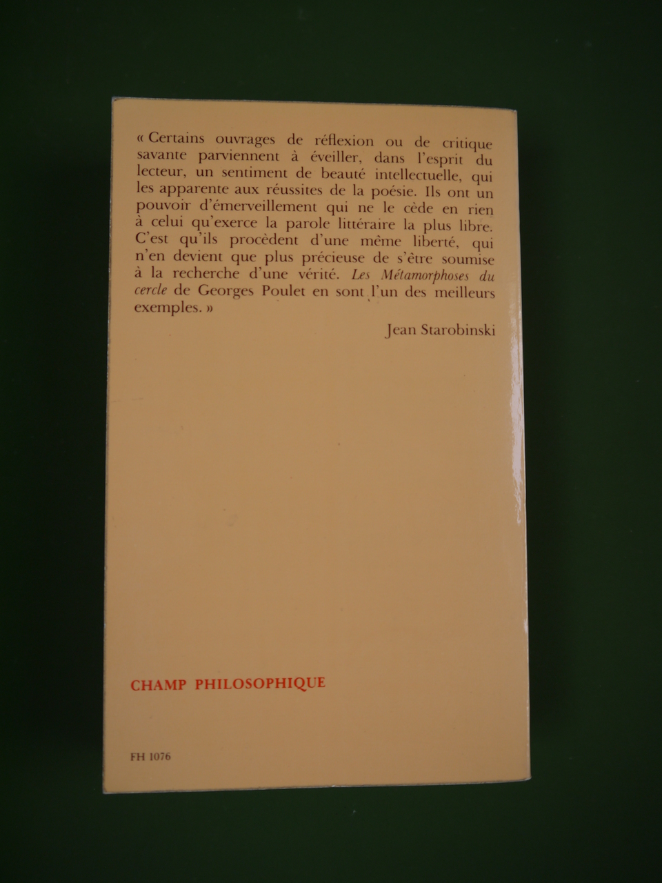 Un copieux essai du frère de Robert Poulet dans la collection » Champ philosophique ».