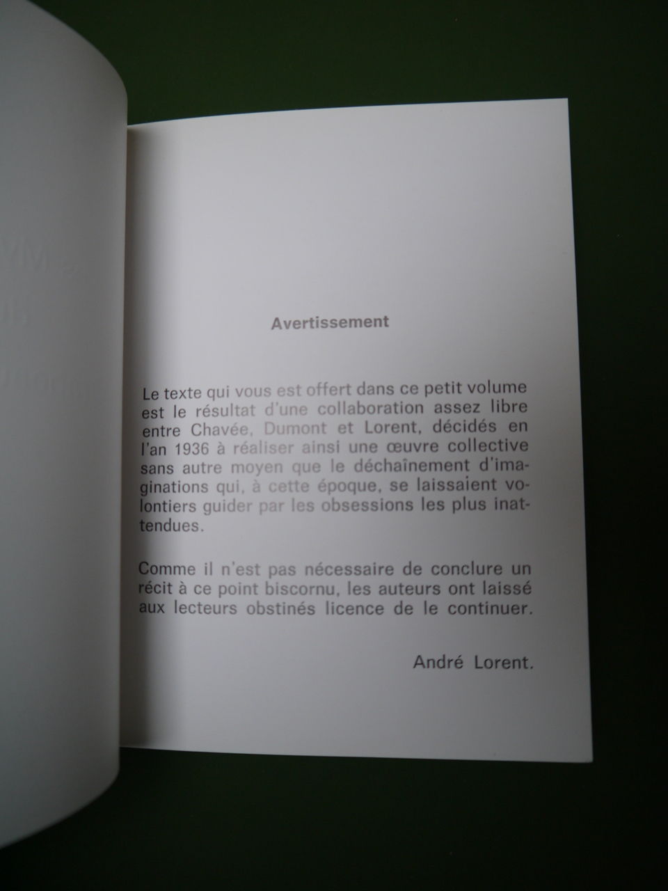 Un récit à trois voix de 1936 que le lecteur est invité à terminer… Tiré à 1000 exemplaires.
