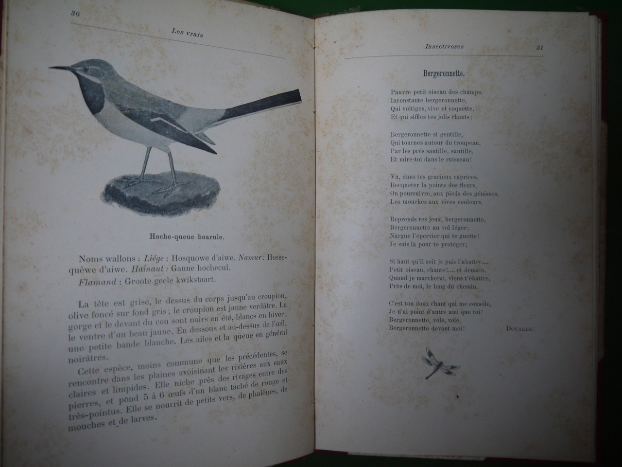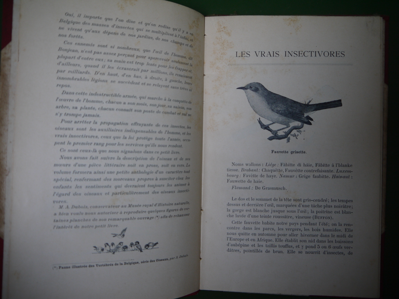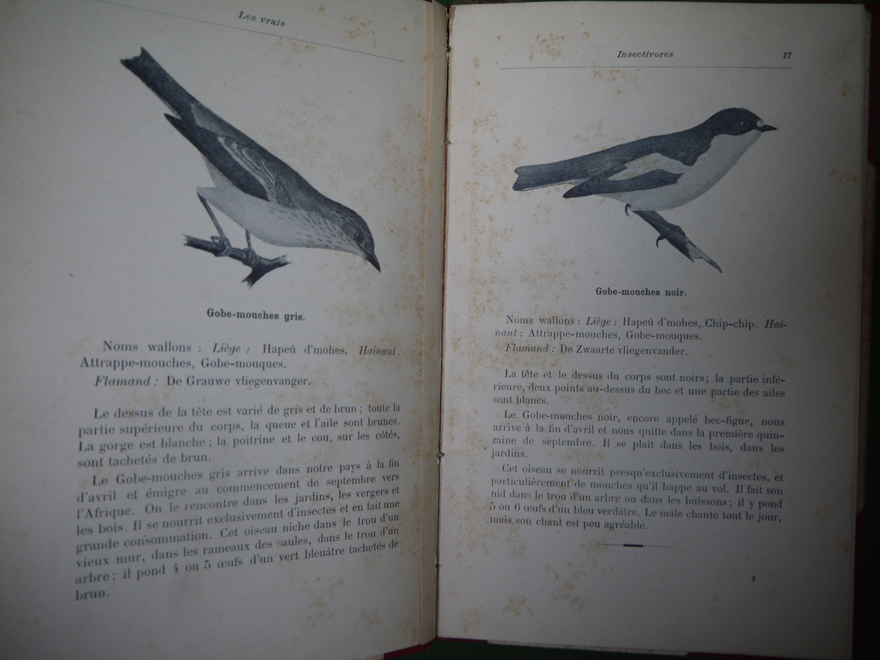 A l’époque déjà, on disait: « Ils sont nos amis, protégeons-les ». L’hirondelle de cheminée, le gobe-mouches gris ou noir, le grimpereau, la mésange à longue queue, le pouillot siffleur… sont présentés avec leurs noms en wallon et en flamand! Date de parution probable: vers 1900.
