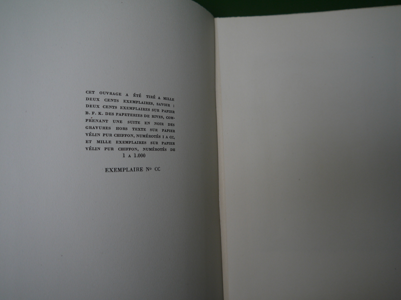 Le huitième titre de la collection « Mazarine » de Gründ. Un des 200 exemplaires « sur papier B.F.K. des papeteries de Rives, comprenant une suite en noir des gravures hors texte » bien présente.
