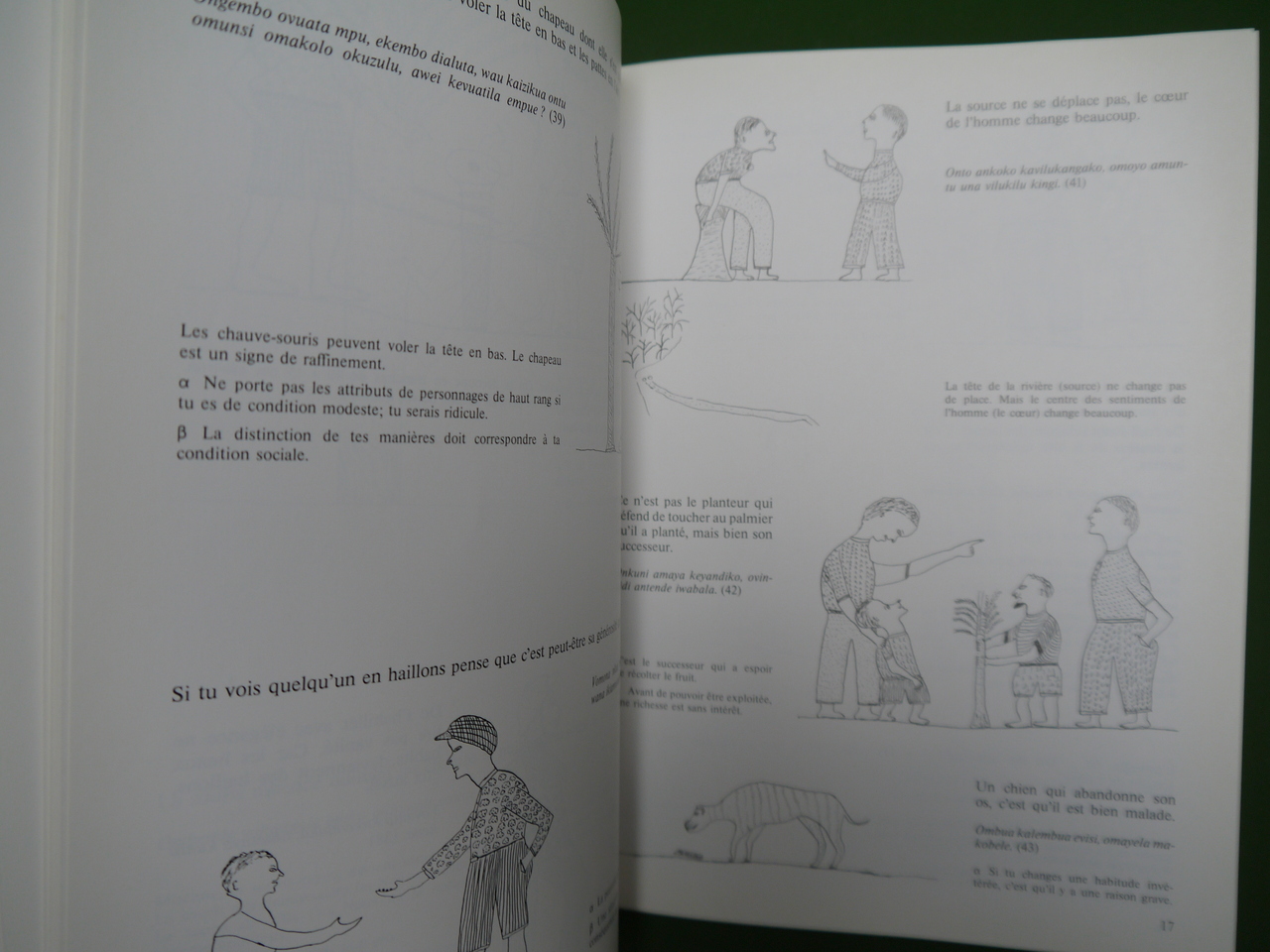 « Proverbes notés en 1936 dans la langue orale », par exemple « Lance le caillou puisque tu l’as dans la main »… qui peut signifier « ne sois pas avare ». 105 pages.