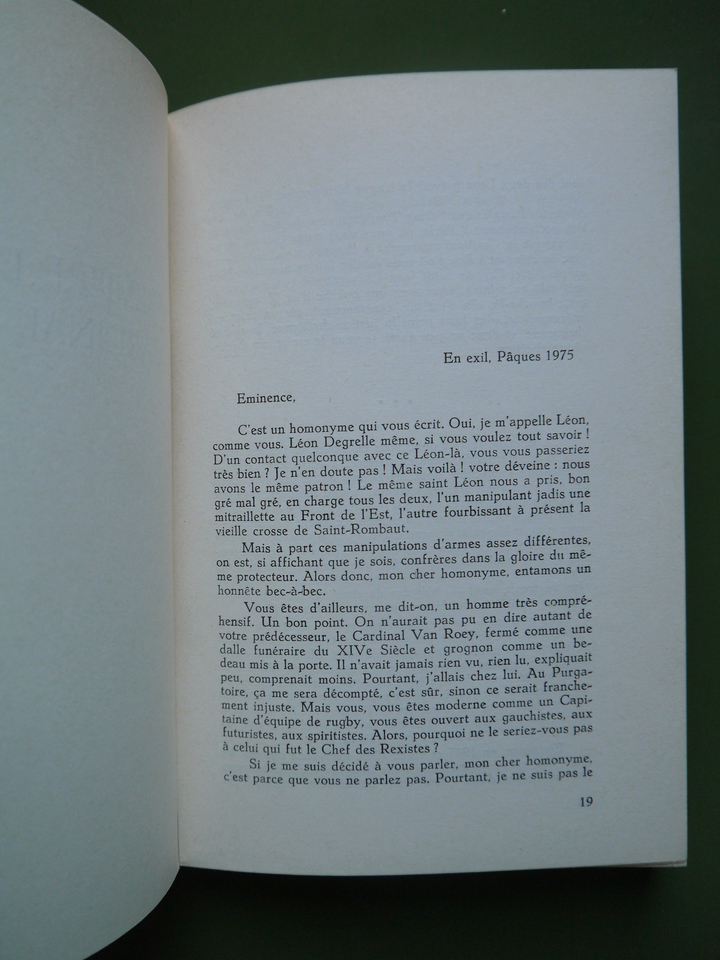 Lettres à mon cardinal, Léon Degrelle, éditions de l’Europe réelle, 1975