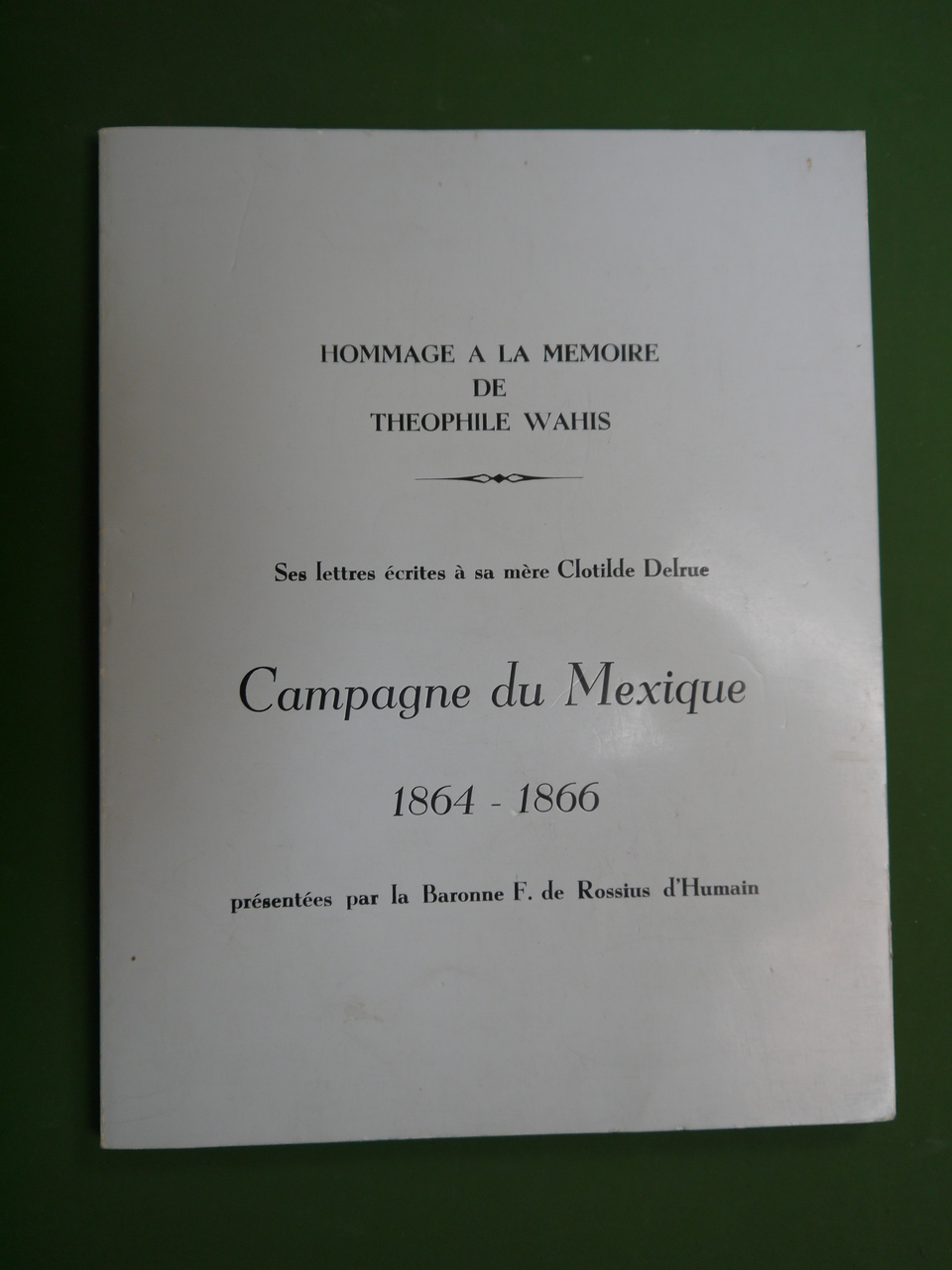 Théophile Wahis faisait partie de la Légion belge envoyée au Mexique entre 1844 et 1846. Il sera plus tard un des hommes de confiance de Léopold II sur ses terres du Congo. Un ouvrage présenté par la baronne F. de Rossius d’Humain.