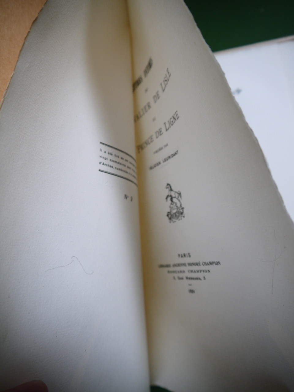 Un des 20 exemplaires sur papier d’Arches. Correspondance issue des archives de Beloeil.