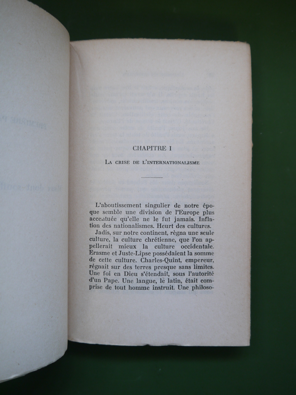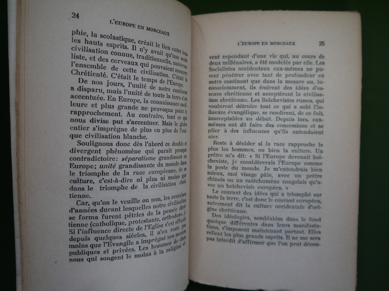 « Maux dont souffre l’Europe », « La grandeur de l’Europe menacée », « Les courants nouveaux » et « Dans l’esprit de demain » lit-on dans la table des matières.