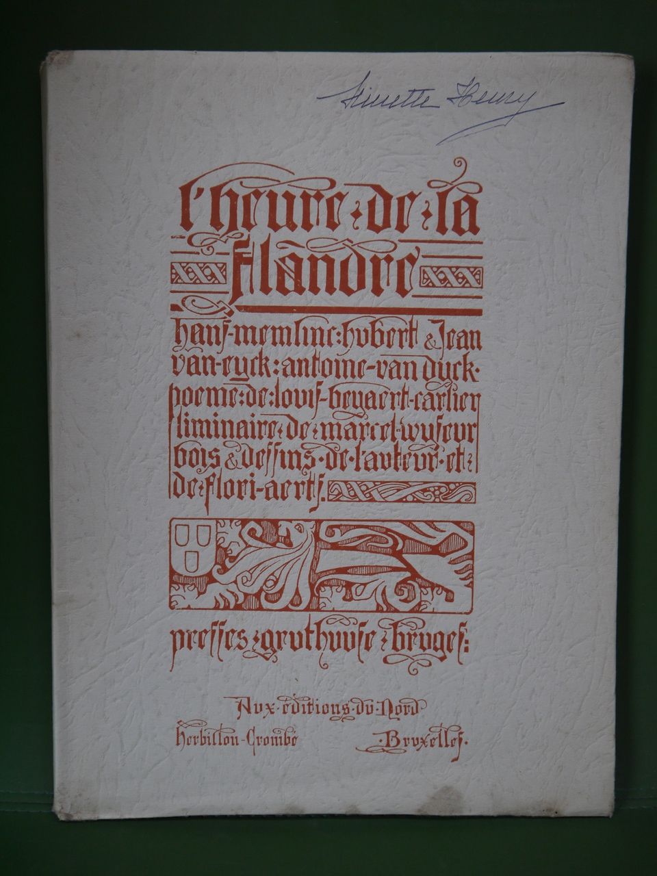 Un poème à la gloire de Memlinc, des frères van Eyck et de van Dyck. Avec des bois et dessins de l’auteur et de Flori Aerts.