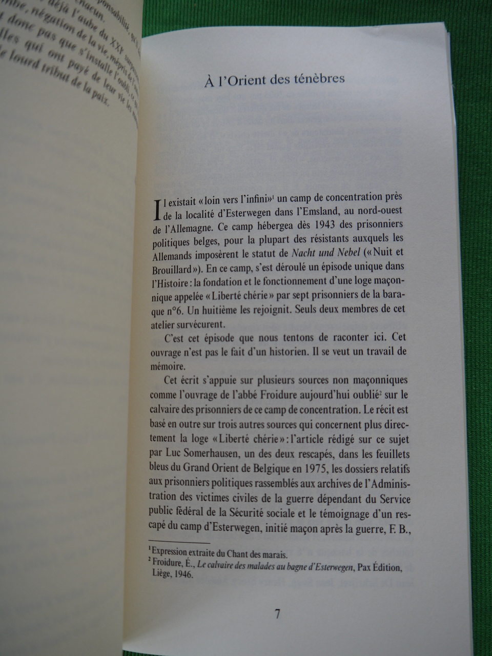 Court récit de la création d’une loge maçonnique dans un camp de déportés « Nach und nebel » belges.