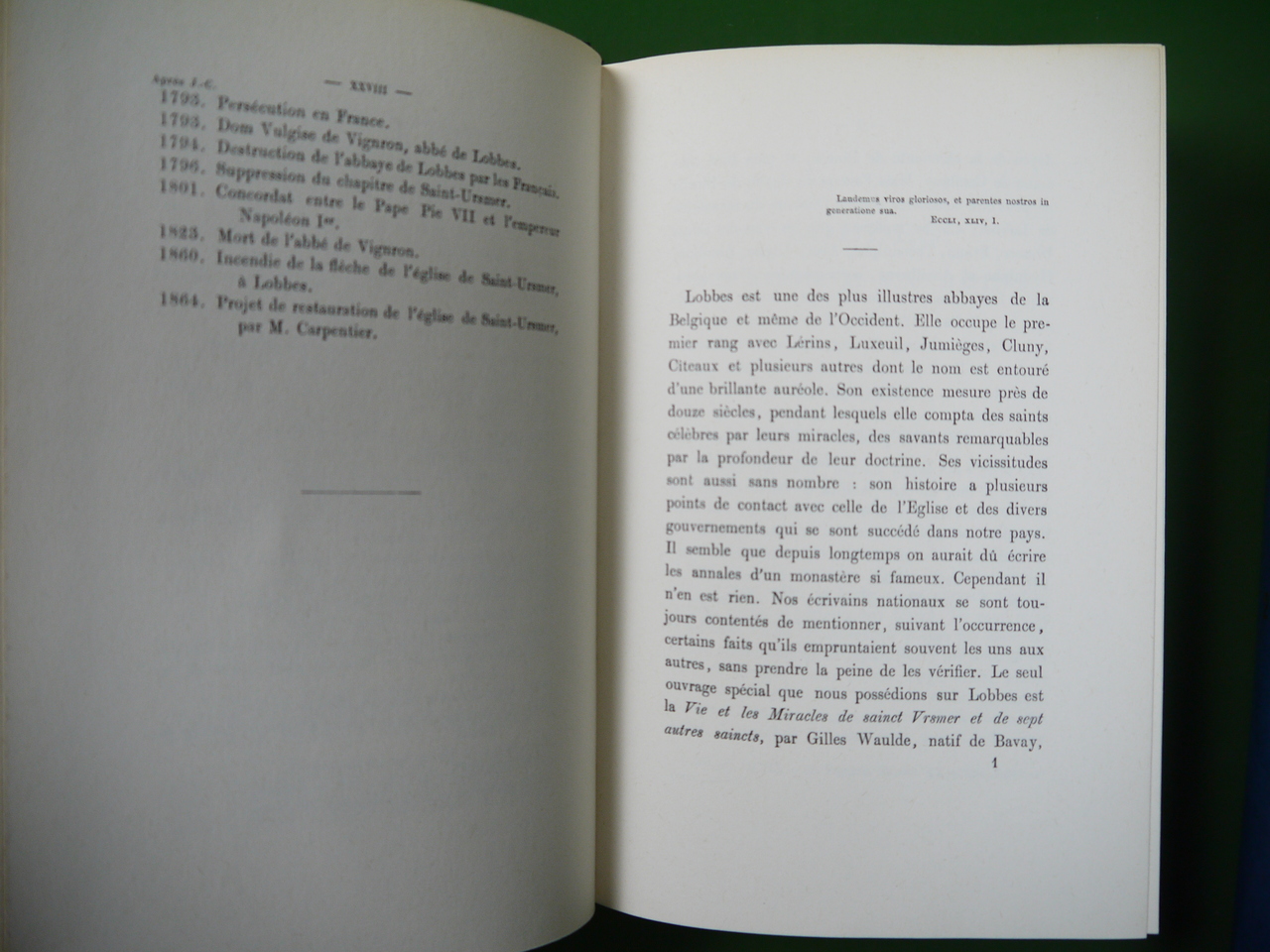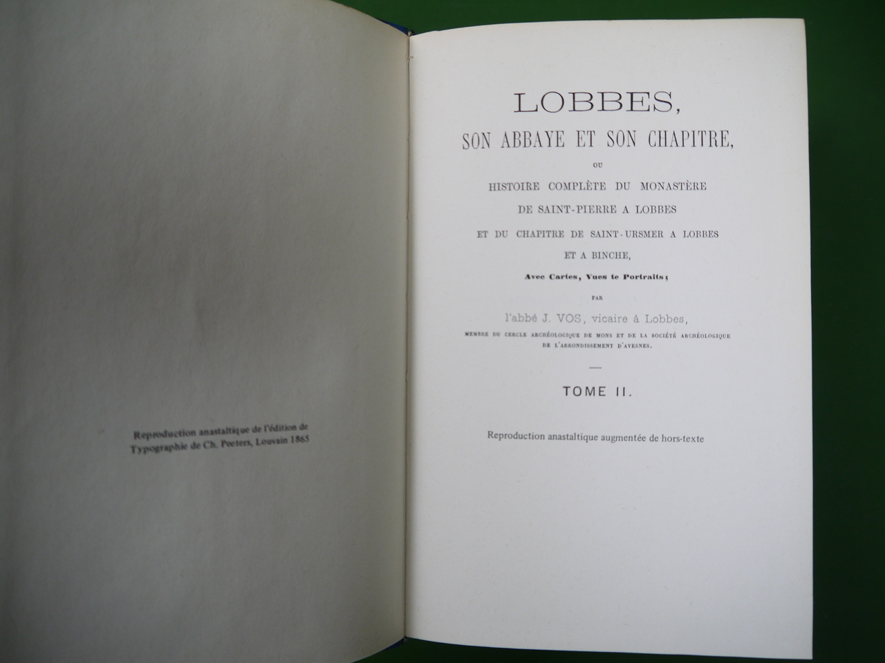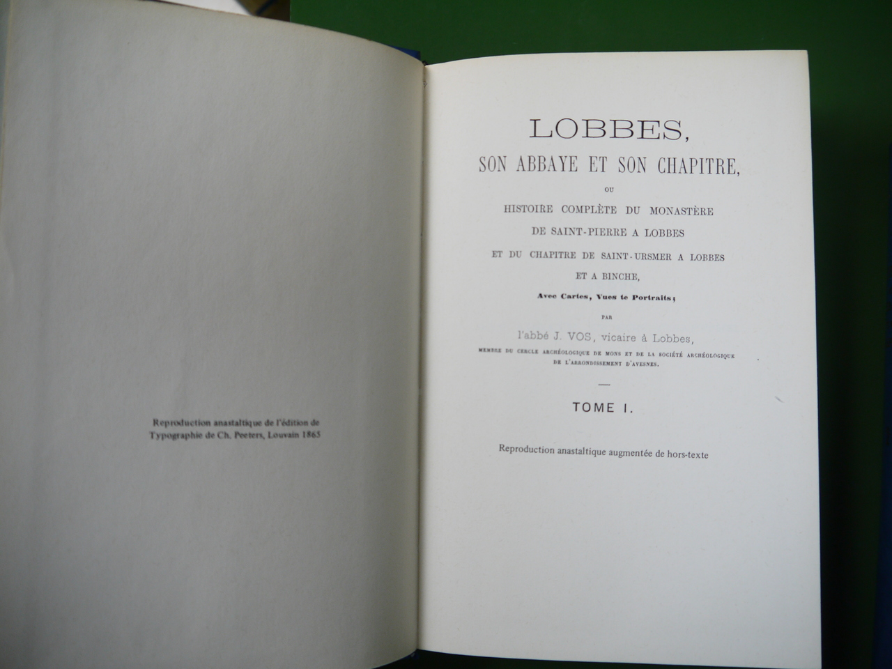 « Histoire complète du monastère de Saint-Pierre à Lobbes et du chapitre de Saint-Ursmer à Lobbes et à Binche ». Reproduction d’un ouvrage paru en 1865.