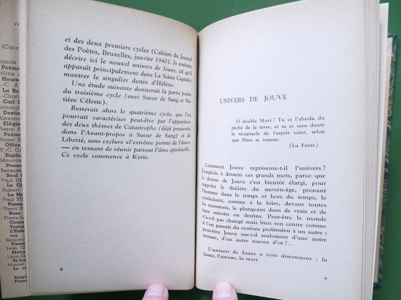 Ce volume contient également « La scène capitale de Jouve », à la « Maison du poète ». René Micha fut critique d’art, administrateur à la Cinémathèque royale de Belgique et un des organisateurs des festivals EXPRMNTL de Knokke.