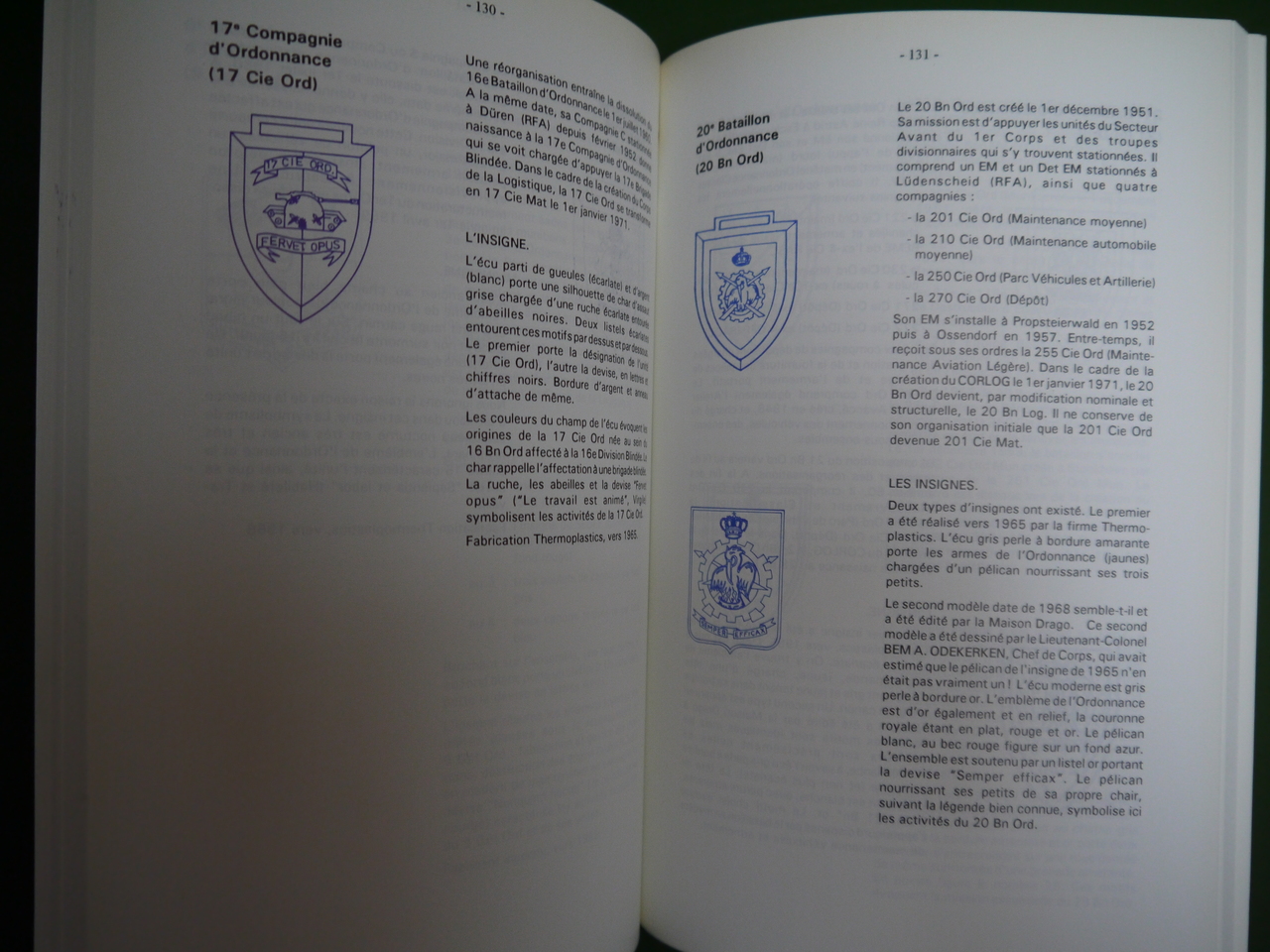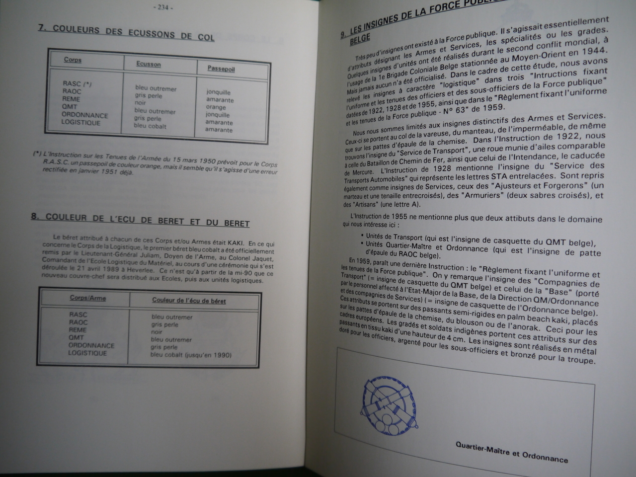 Aperçu historique succint des armes logistiques à l’armée belge de 1940 à nos jours & essai de monographie des insignes d’unités ».