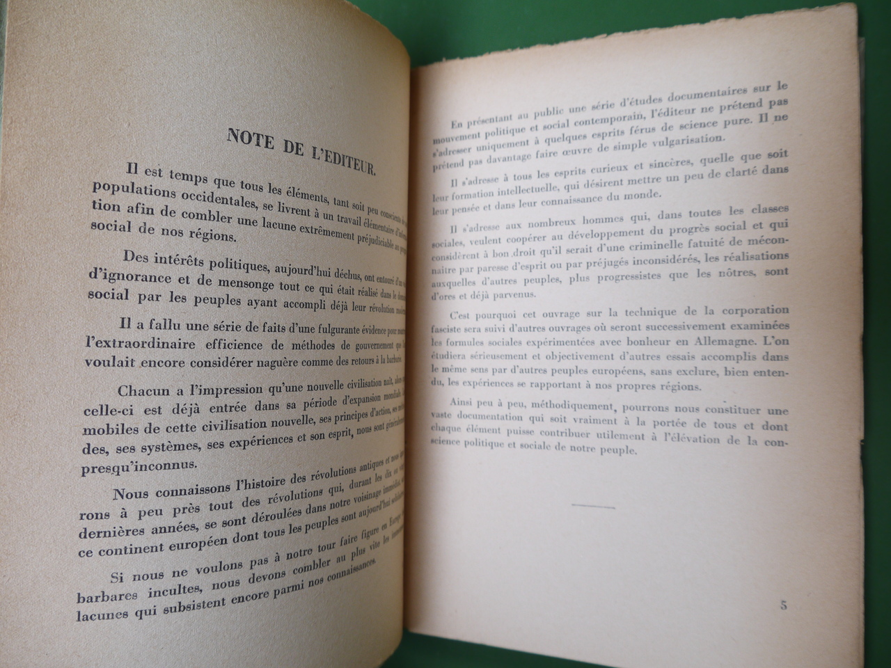 On lit « décembre 1940 » en fin d’ouvrage, après la phrase « Puisse la Belgique puiser dans cette expérience les fondements pour sa renaissance économique » – l’expérience en question étant le corporatisme à l’italienne.