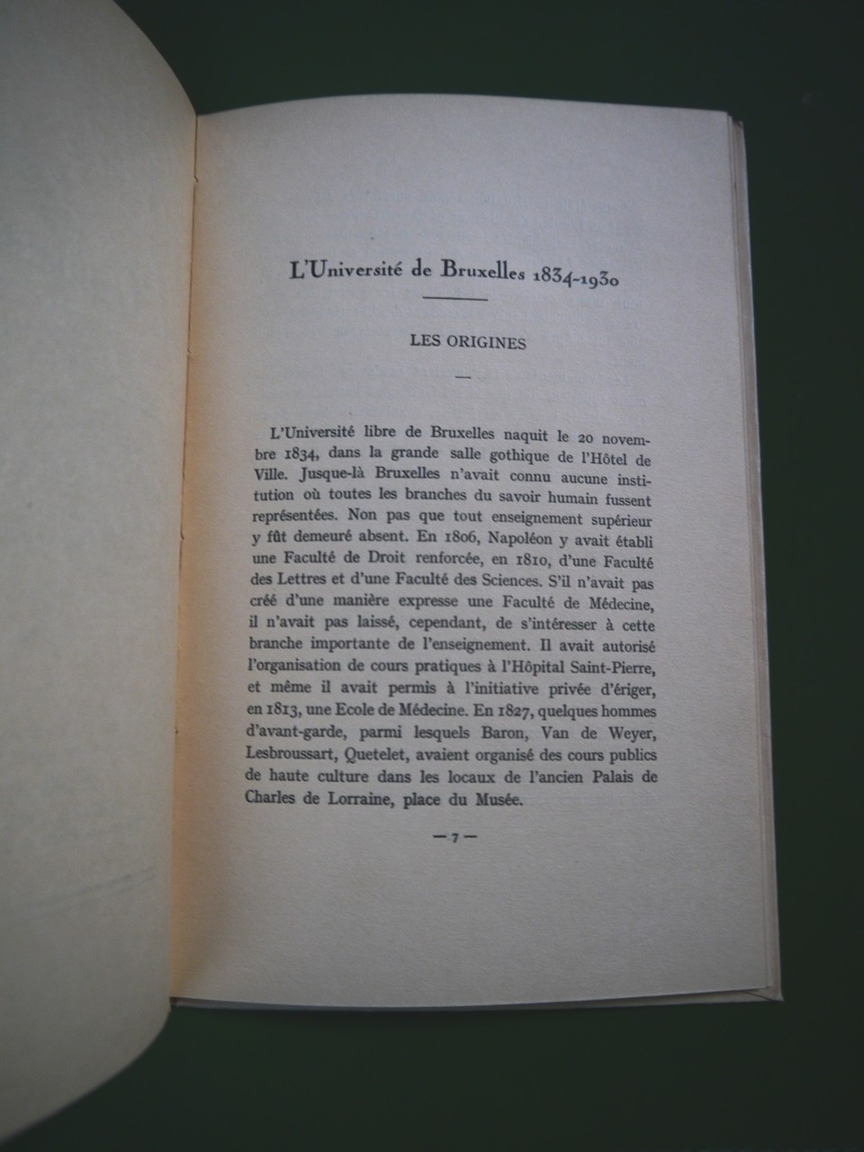 Une plaquette de 29 pages sur les années 1834-1930 de l’ULB.