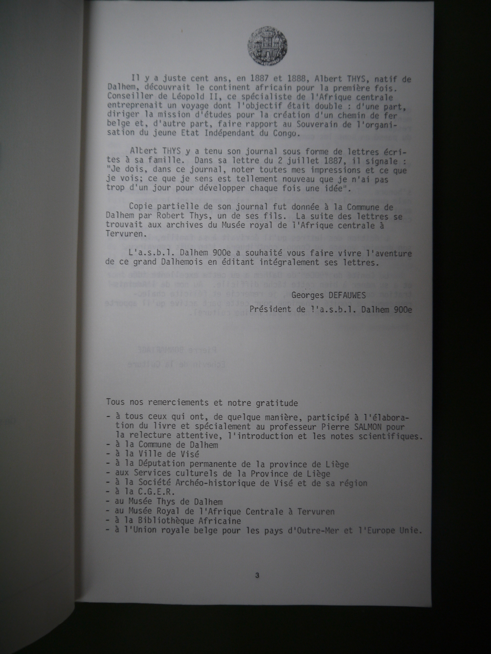 Reproduction de la correspondance congolaise d’Albert Thys, un natif de Dalhem, en province de Liège, envoyé spécial de Léopold II en vue de la construction de chemins de fer.